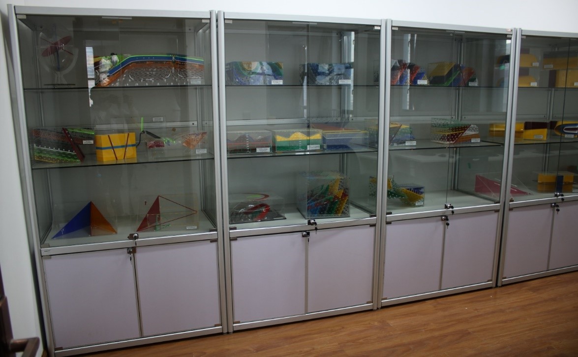 构造实验室涵盖丰富的地质构造模型,每一件构造模型相当于自然界对应地质构造的缩影,同时配备3D地质数字模型系统及专用绘图桌椅,为构造地质学实习实践的重要平台。主要承担构造地质学实验课程、 3D地质建模大赛等;同时承担资源勘查工程、勘查技术与工程、石油工程等专业各类制图课程的实践教学。