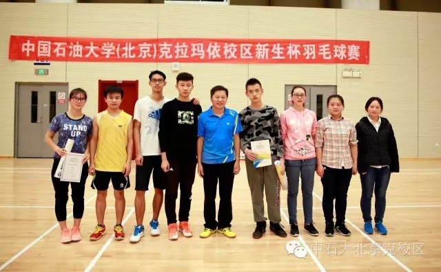 赛后,中国石油大学(北京)副校长、校区管委会主任、党工委书记张士诚分别为新生杯羽毛球比赛的男单、女单、男双冠军颁发荣誉证书和奖品,为参加此次PK赛的同学们颁发了纪念品并合影留念。