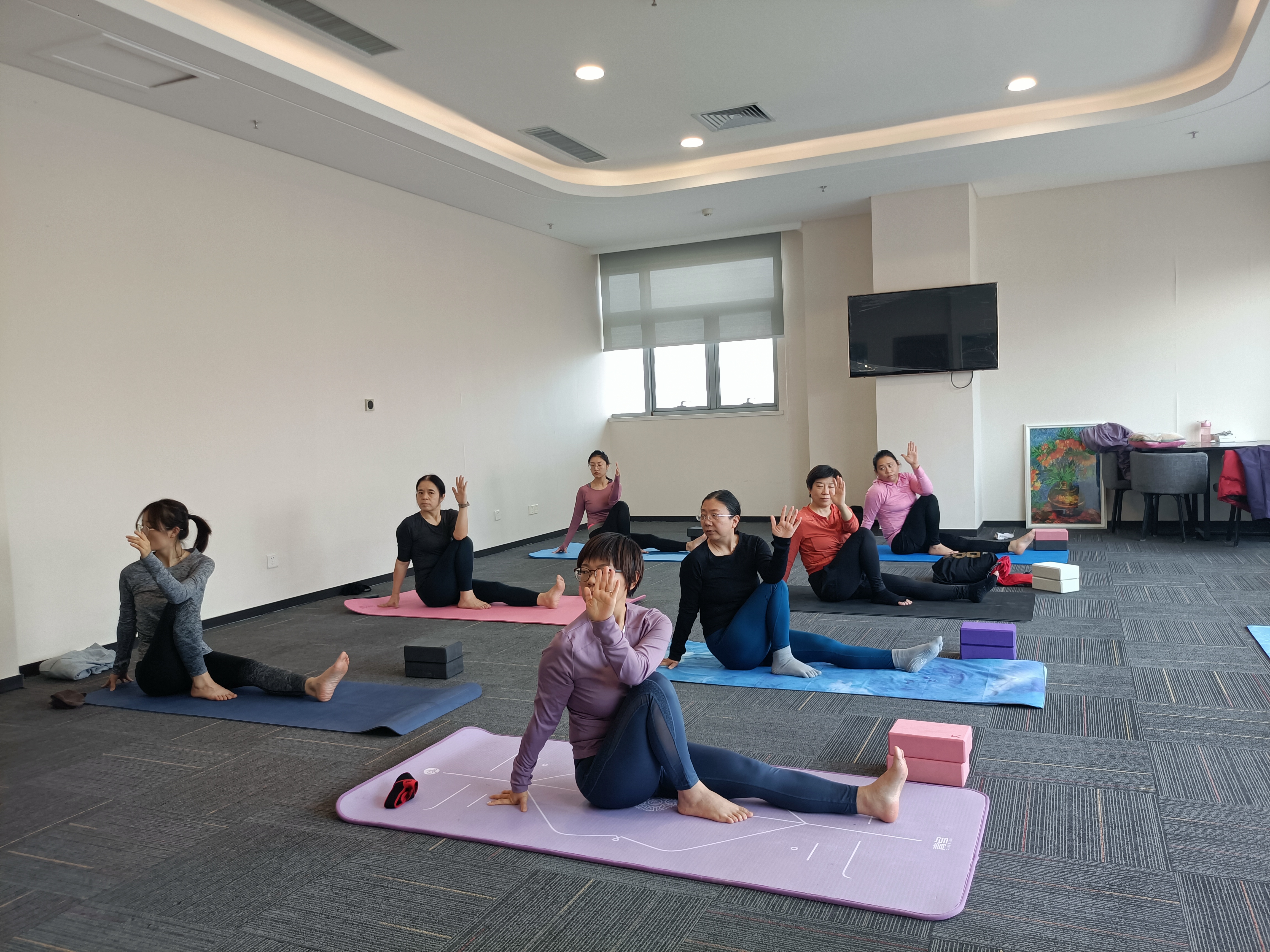 瑜伽协会利用周二中午和周三晚上时间,在活动室开展常态化训练及授课,为大家提供了强身健体、美化形体、舒缓压力、放松身心的交流平台。会员们坚持在瑜伽班学习、锻炼、交流;学员们在教练的专业指导下,逐步体验瑜伽运动为大家带来的乐趣。一个多小时的练习,让大家紧绷的肌肉得到放松,精神压力得到释放,感觉到身心舒展。