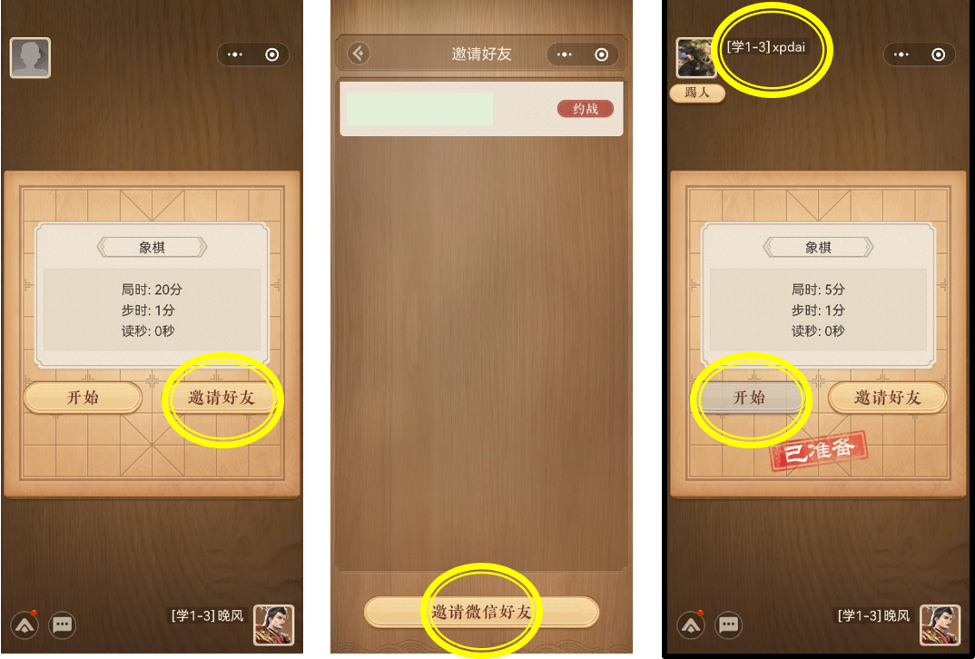 6、比赛前可任意邀请好友(非对阵选手)进行平台测试,与对阵选手前三局即是比赛,比赛后可以继续切磋。