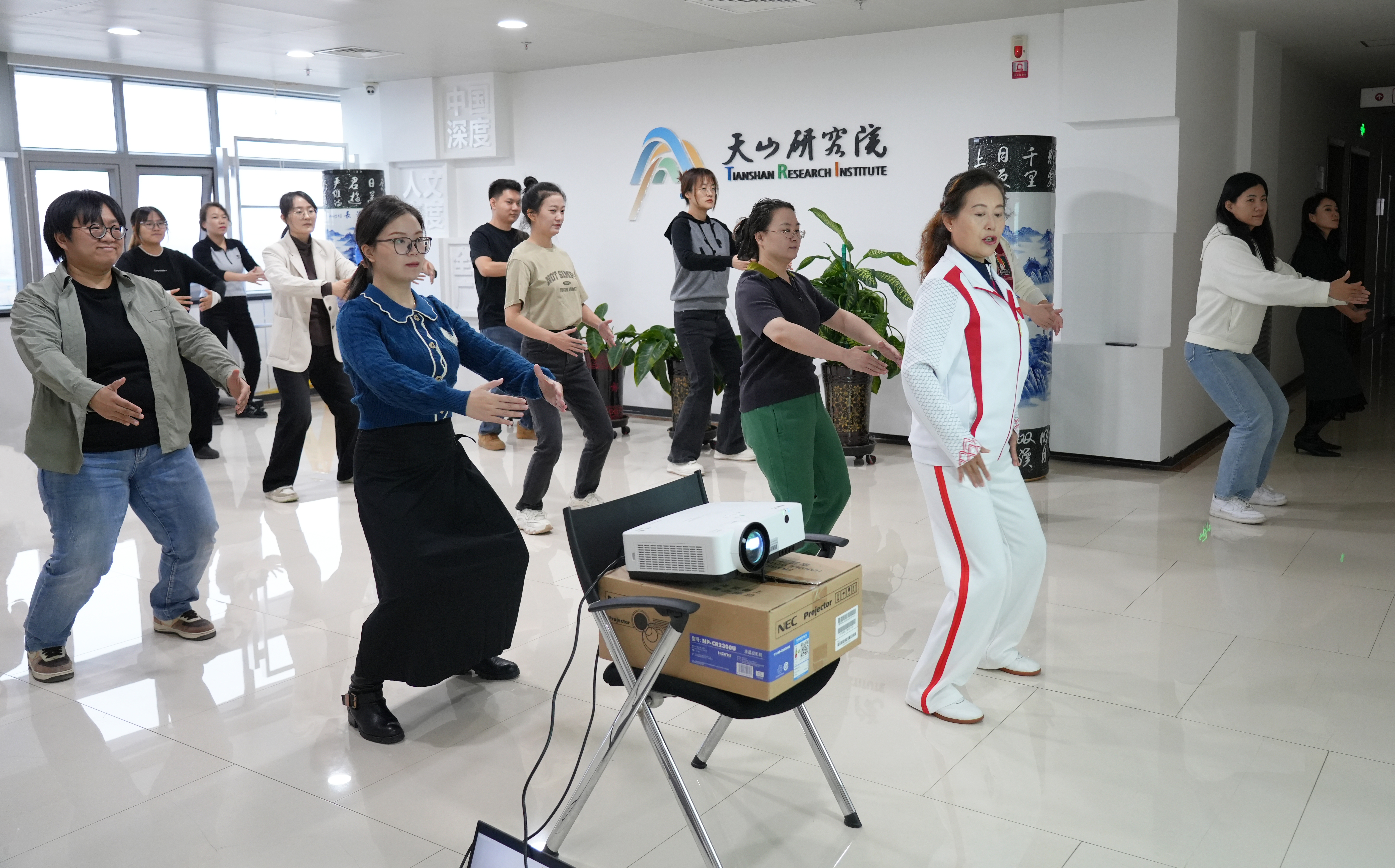 活动期间,校区工会特别邀请了文理学院的祁燕老师作为专业指导教练,轮流前往各分工会进行“八段锦”健身气功的教学指导。在祁老师的悉心教授下,教职工们一招一式地认真学习,体会着身心的拉伸、扭转以及与呼吸的密切配合。八段锦的练习不仅有助于调理身心、强身健体,更在教职工中传承了中华传统养生的经典文化。