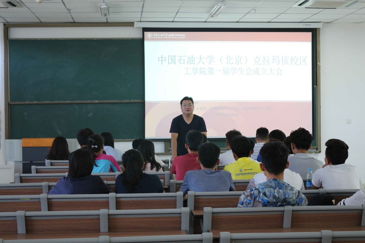7月5日,中国石油大学(北京)克拉玛依校区工学院第一届学生会成立大会在C6教学楼301教室举行。工学院专职副书记张松宣读了第一届学生会全体干部名单,并对学生会的成立表示热烈祝贺。