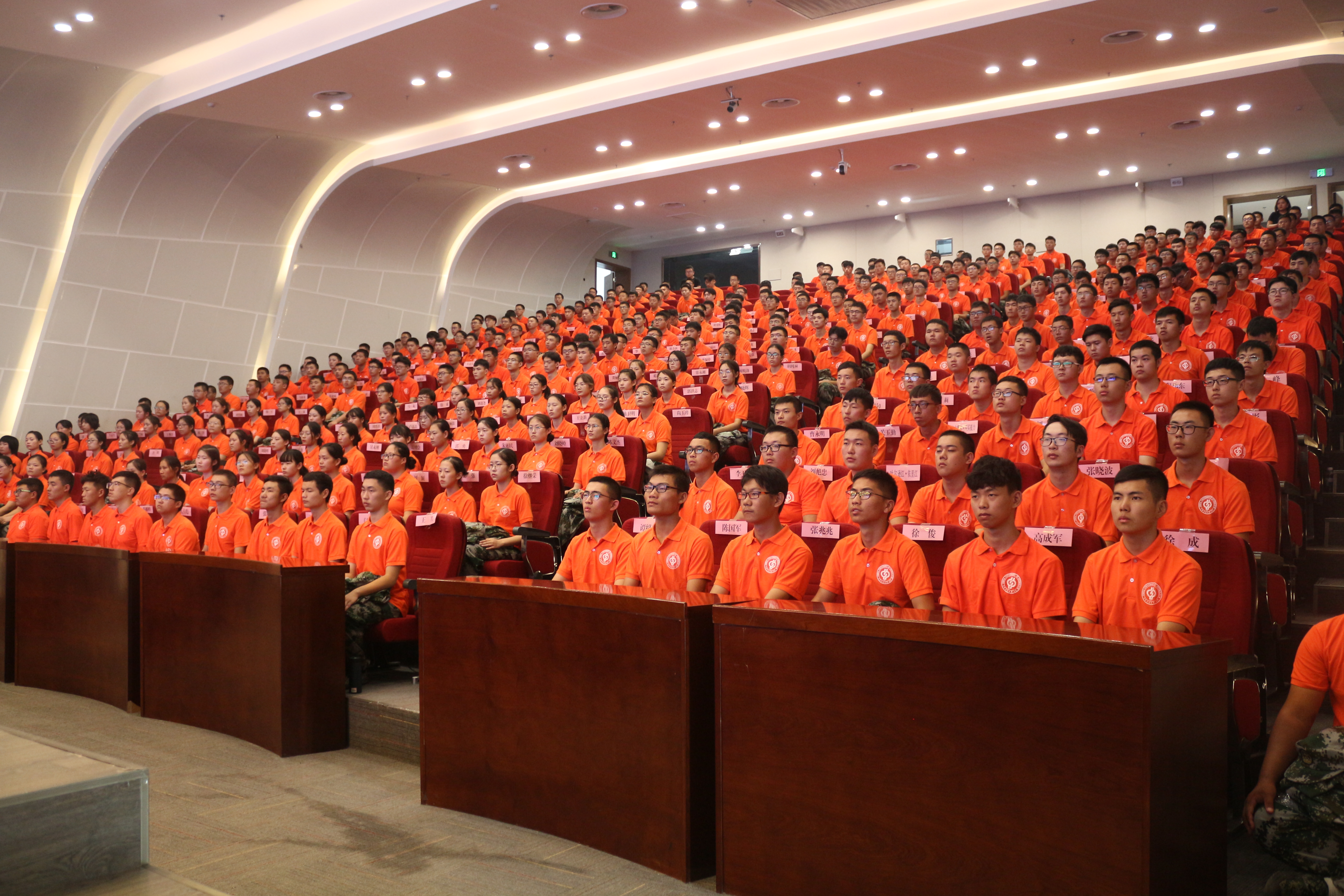 开学典礼在慷慨激昂的《义勇军进行曲》歌声中拉开帷幕。新生代表储运系伍梓文发言,表达了对即将到来的大学生活的憧憬和期望,立志追求卓越,艰苦奋斗,勇敢地迎接即将到来的挑战。