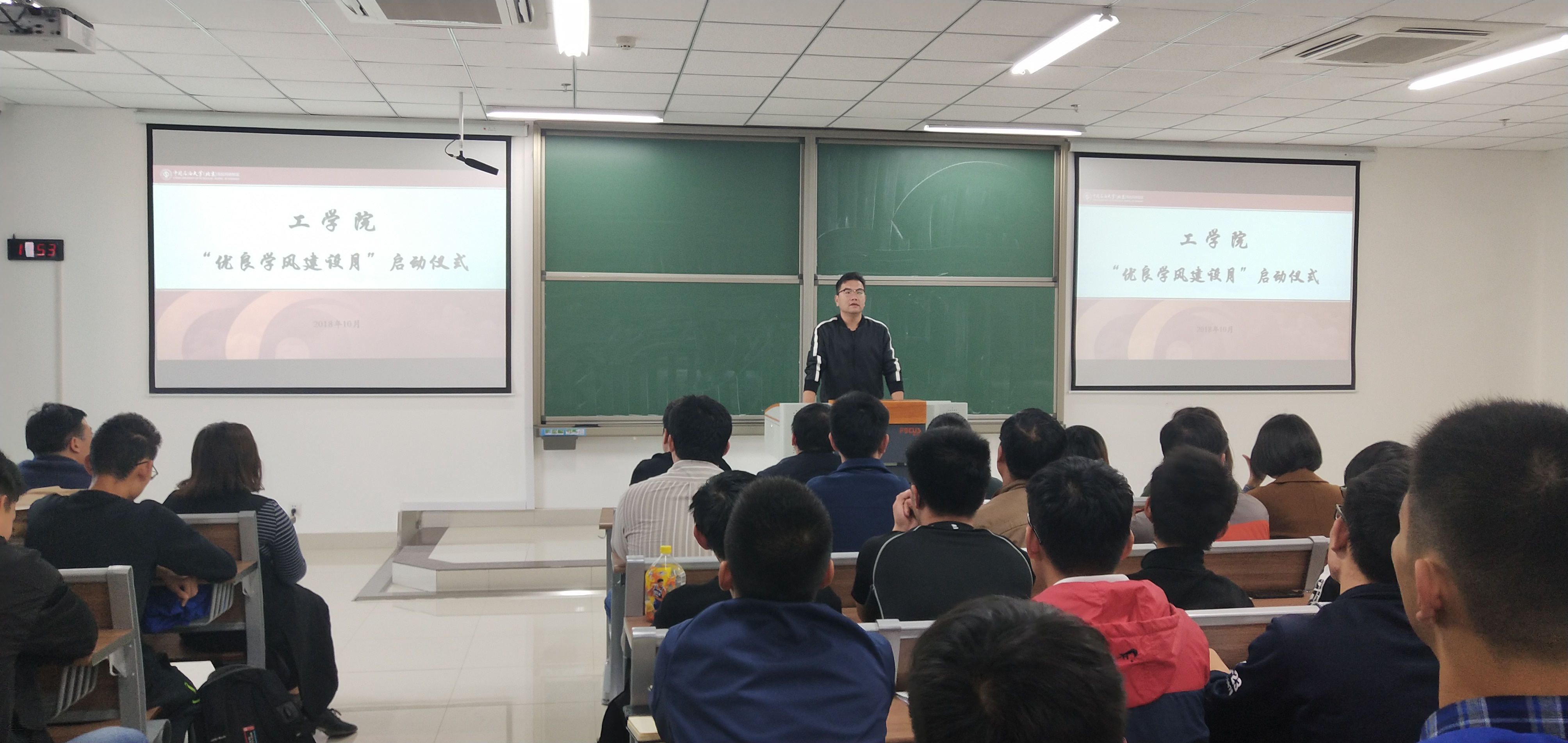 10月12日下午,工学院在C8 I区318教室成功举办了“优良学风建设月”启动仪式。工学院副书记张松,各级辅导员,各班班主任以及院系主要学生干部参加了活动。启动仪式由工学院辅导员古丽寨娜主持。