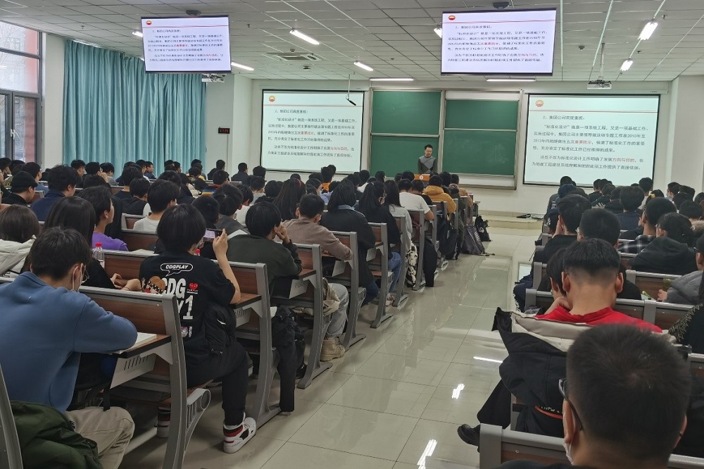 夏新宇从油气田标准化设计的背景、理念、工作定位和组成模块出发,围绕标准化工程设计、规模化采购、工厂化预制、组装化施工、标准化计价以及数字化建设等六个部分进行阐述。他向与会师生介绍了新疆油田特色技术在油气田标准化设计中的应用,分享了标准化设计成功应用于重32集油区、玛湖油田及克拉美丽天然气处理站等示范工程的典型案例。针对同学们关心的就业问题,夏新宇向大家介绍了储运工程专业领域相关行业的工作内容、薪资待遇和个人发展情况,为学生今后实习就业提供借鉴。在互动环节,夏新宇认真解答了现场师生提出的问题,他结合自身学习和工作经历,勉励同学们要勤学好问、踏实肯干,希望今后能有更多的同学留在新疆油田公司工作,共同建设美丽新疆。