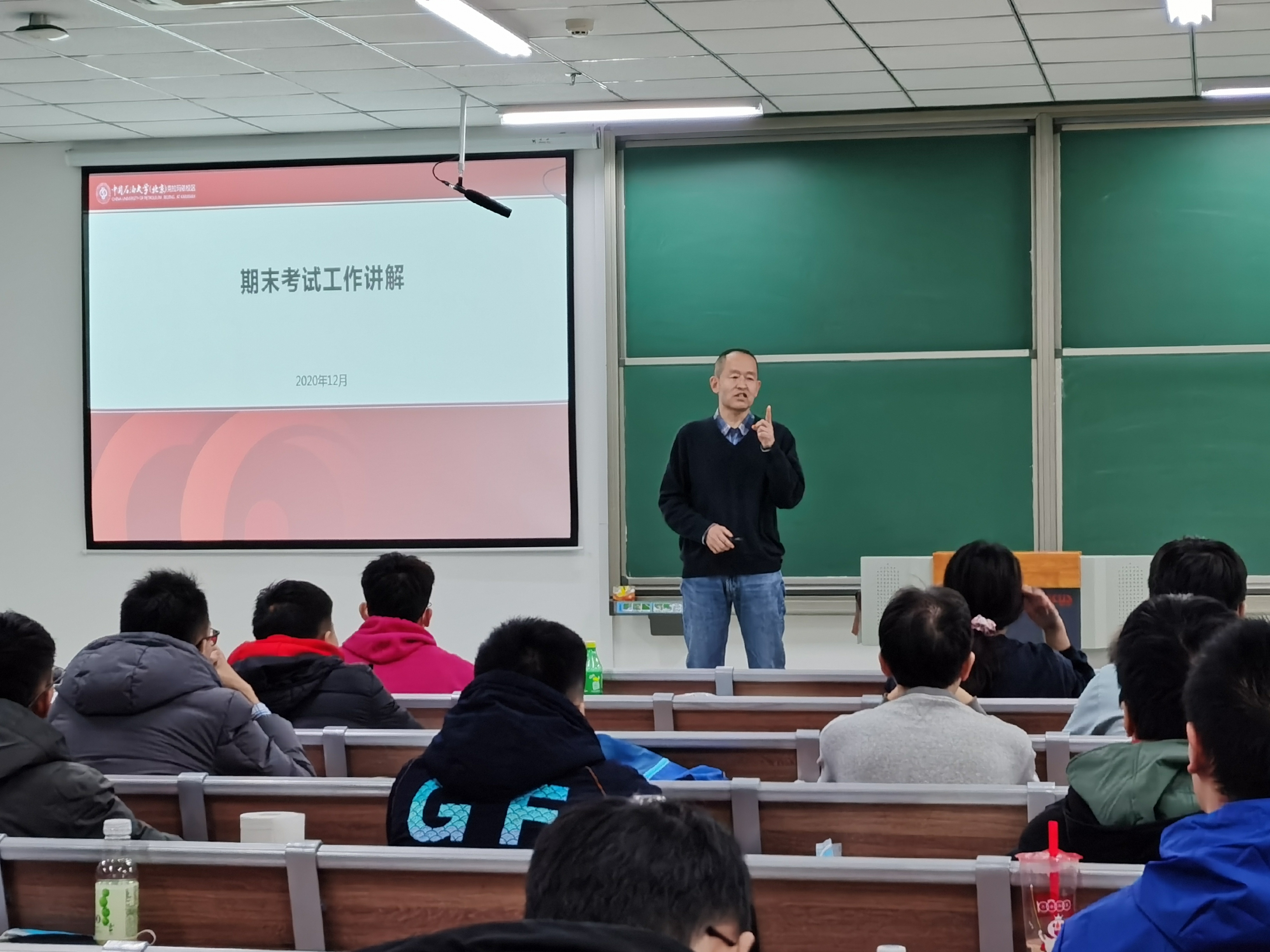 郭绪强向与会学生介绍了大学期末考试的目的和意义,对如何高效备战期末考试进行指导,要求同学们端正学习态度,做好期末复习,在考试过程中严肃考风考纪,认真对待每一门考试。他希望同学们能够明确努力方向,坚定必胜信心,在大学生涯的第一场期末考试中充分发挥水平,为今后的学习生活打下坚实的基础。