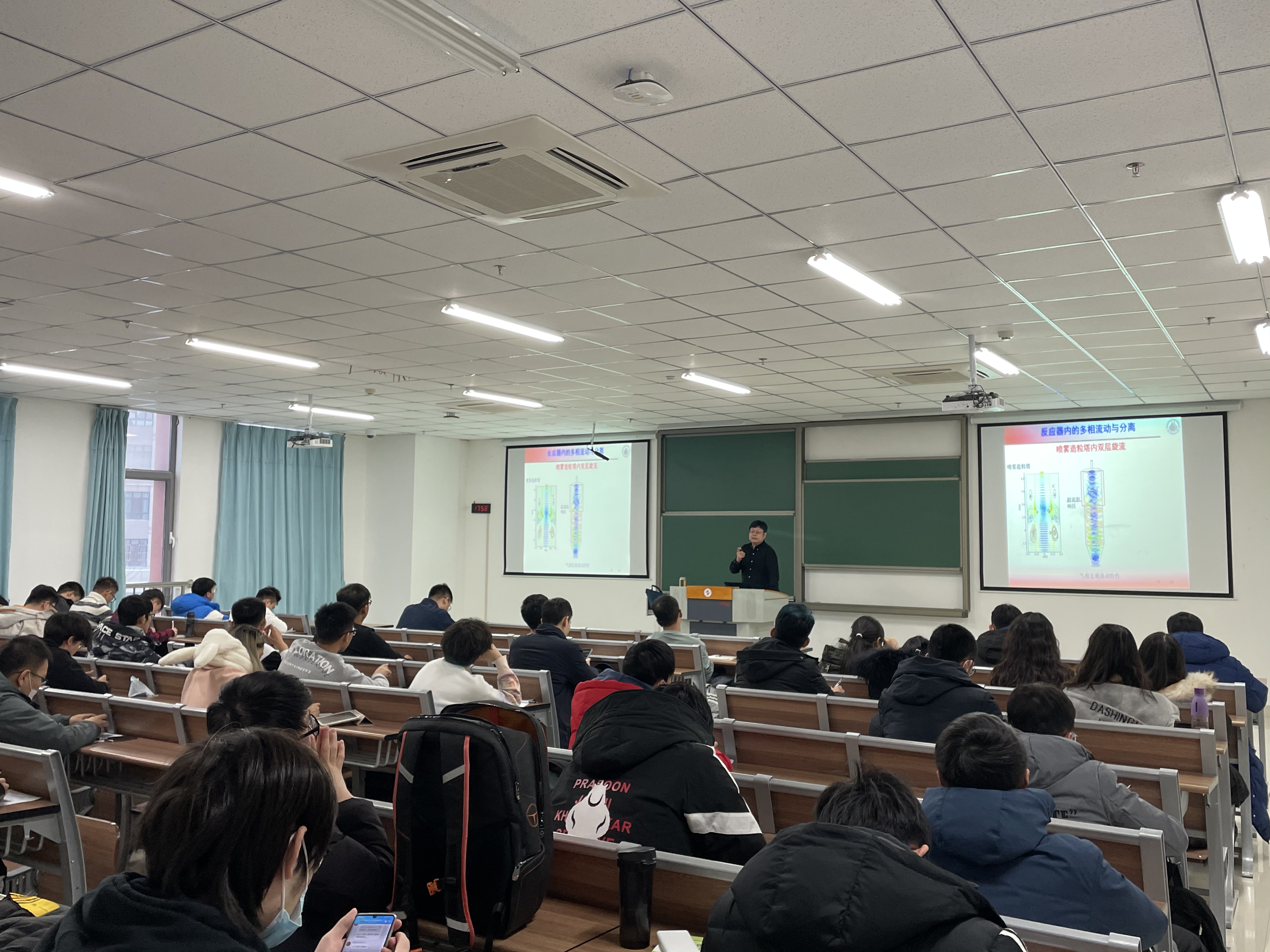 王江云围绕反应器内多相流动与分离、多相流动与冲蚀和多相流动与燃烧、传热三个部分,全面介绍了CFD技术在工程实例当中的应用。他结合模拟计算结果,展示了CFD技术在解决工程问题中的优势和特点。讲座最后,王江云鼓励同学们积极参与科研实践类活动,在实践中培养发现问题及解决问题的能力,真正做到学以致用。
