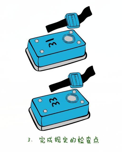 (五) 注意:电子打卡器的使用:1、当点签器闪亮红色提示灯并发出'滴'声,则表示打卡成功。2、运动员打卡时一定要确认点签器是否接受到了反馈信号,避免最后成绩无效。3、如打卡太快而没有接受到反馈信号,检查卡内不会留下打卡记录。4、如使用指卡打卡时,应在检查器中间位置标注圆圈范围内打卡。打在范围外可能电磁无法感应,导致成绩无效。5、若是比赛过程中出现打卡故障,可使用放置在点签器旁的机械打卡器在打卡签预留的签到框内打孔表示签到(最终成绩需由裁判组判定电子计时是否真事失效)。