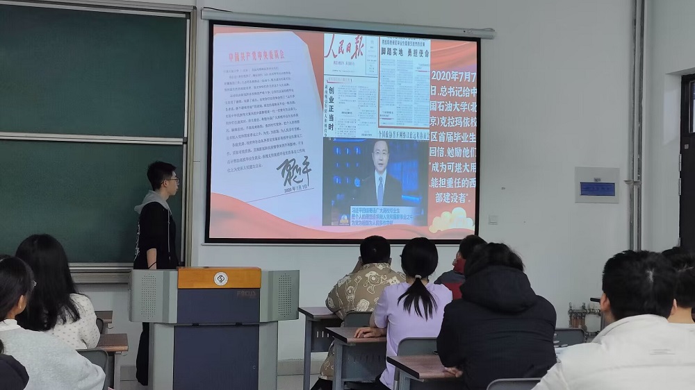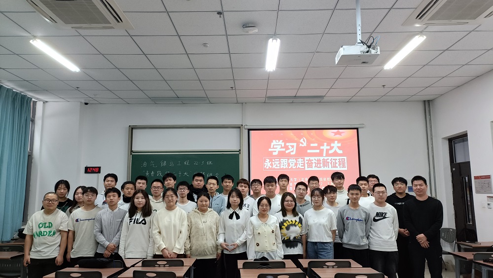 20级储运专业邀请学院副院长邢晓凯教授为同学们召开主题班会。邢老师结合党的二十大精神向同学们介绍了双碳目标——中国力争2030年前实现碳达峰,2060年前实现碳中和以及在双碳下油气储运行业的发展,会上与同学们亲切交谈,回答了同学们对考研、保研的疑惑和我校储运专业历年就业情况。邢院长表示,党的二十大是崭新的开始,是我国向第二个百年奋斗目标进军的关键时刻,新时代大学生,更应从自身出发,响应党的号召,以更加努力向上的姿态投身于中华民族伟大复兴。