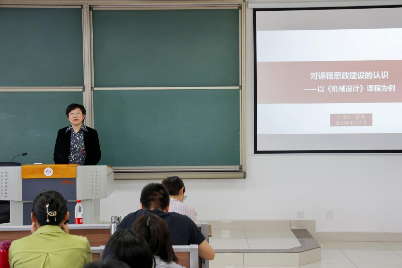 校区纪检监察部主任陈晖结合党支部“1+5”共建工作实践,分享了党建引领课程思政建设的路径方法,并以《机械设计》课程为例,探讨了专业课程中如何挖掘和融入思政元素。她认为,课程思政建设必须使用课程语言开展思政教育,应当从大处着眼,细处着手,精心设计课程,使得明暗线匹配,实现思政元素有机融入。