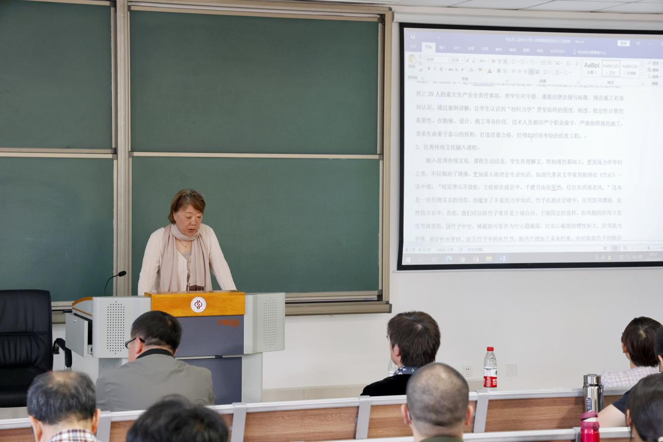 学院银龄教师毛东凤教授分享了《材料力学》课程思政设计案例,结合课程的章节和重要知识点,从理想信念融入课程、职业道德融入课程、优秀传统文化融入课程、爱国主义融入课程、创新精神融入课程5个方面具体介绍了课程思政设计的思路,并分享了如何将这些元素更好地在授课过程中呈现以实现育人效果的典型经验。