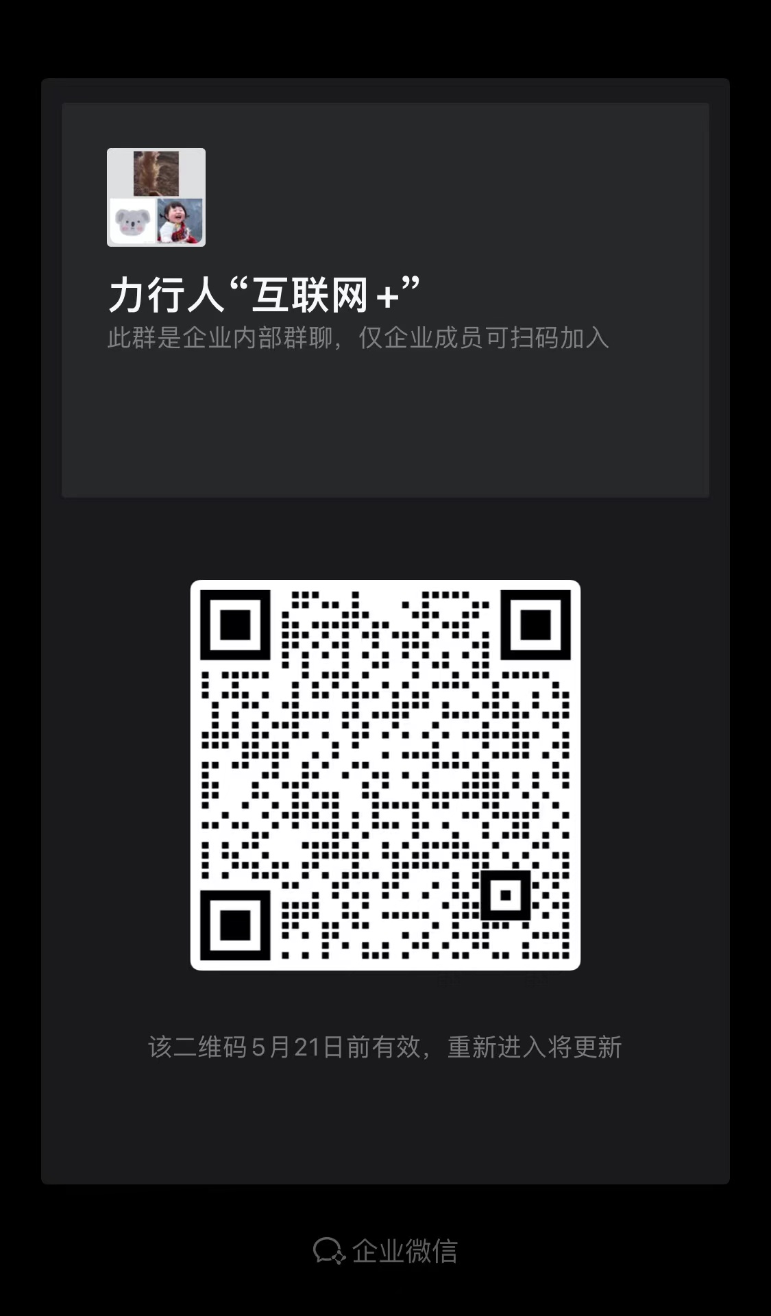 后续培训及相关通知将在群内发布,请各项目主要负责人扫码加入力行人“互联网+”企业微信群。