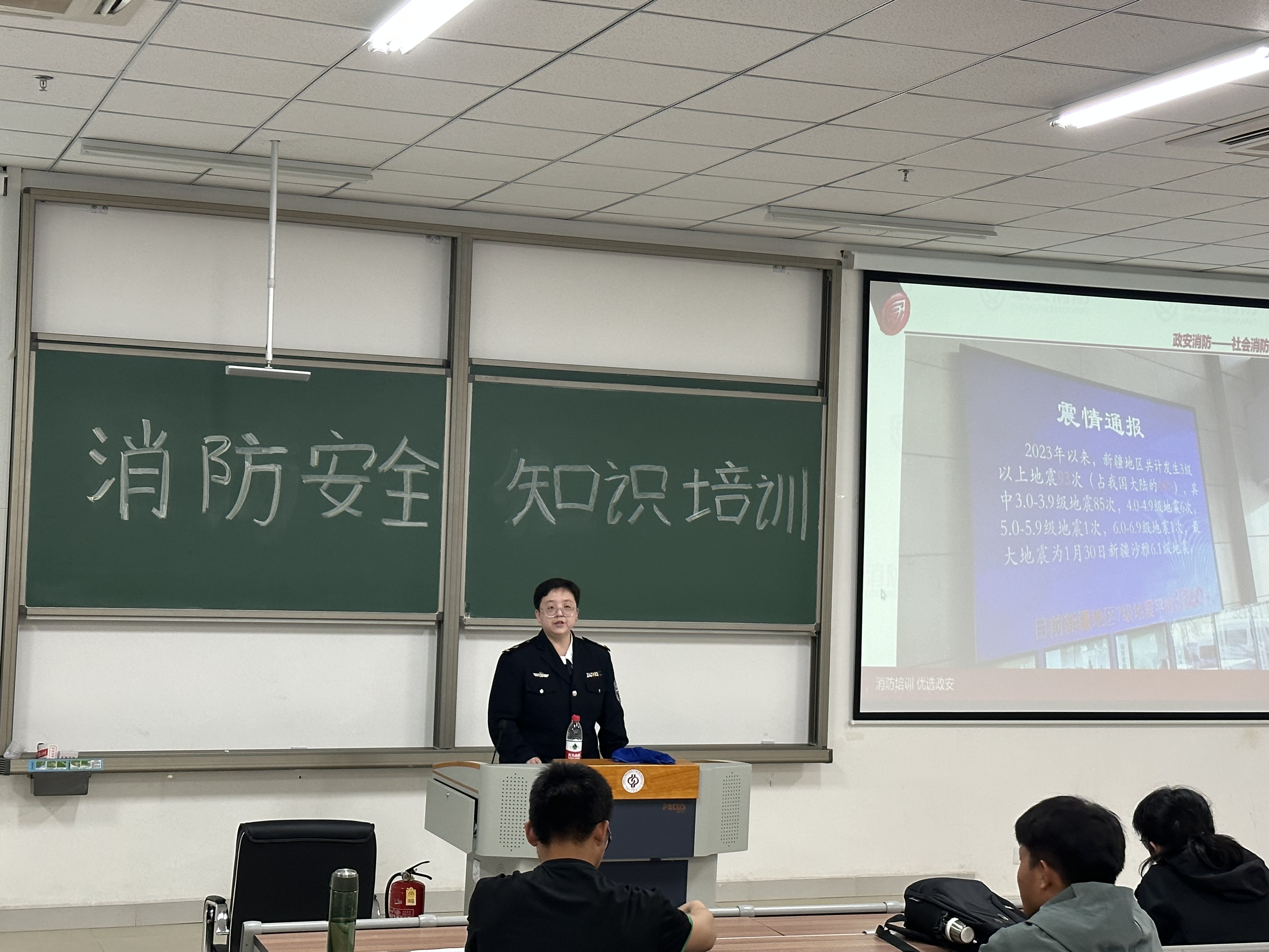 培训会上,宣讲员向同学们讲述了消防灭火实例,就疏散逃生的基本常识、消防火灾的应急流程以及预防、消防器材的正确使用进行了讲解。还介绍了消防安全职责、火灾隐患风险、火灾预防及日常管理、 火灾处置要求等方面的知识。重点强调了火灾隐患风险排查的重要性,要求“救险于未起,防患于未‘燃’”。此次讲座内容丰富、图文并茂、事例生动、说服力强,极大地增强了师生的消防安全意识和应急处置能力。