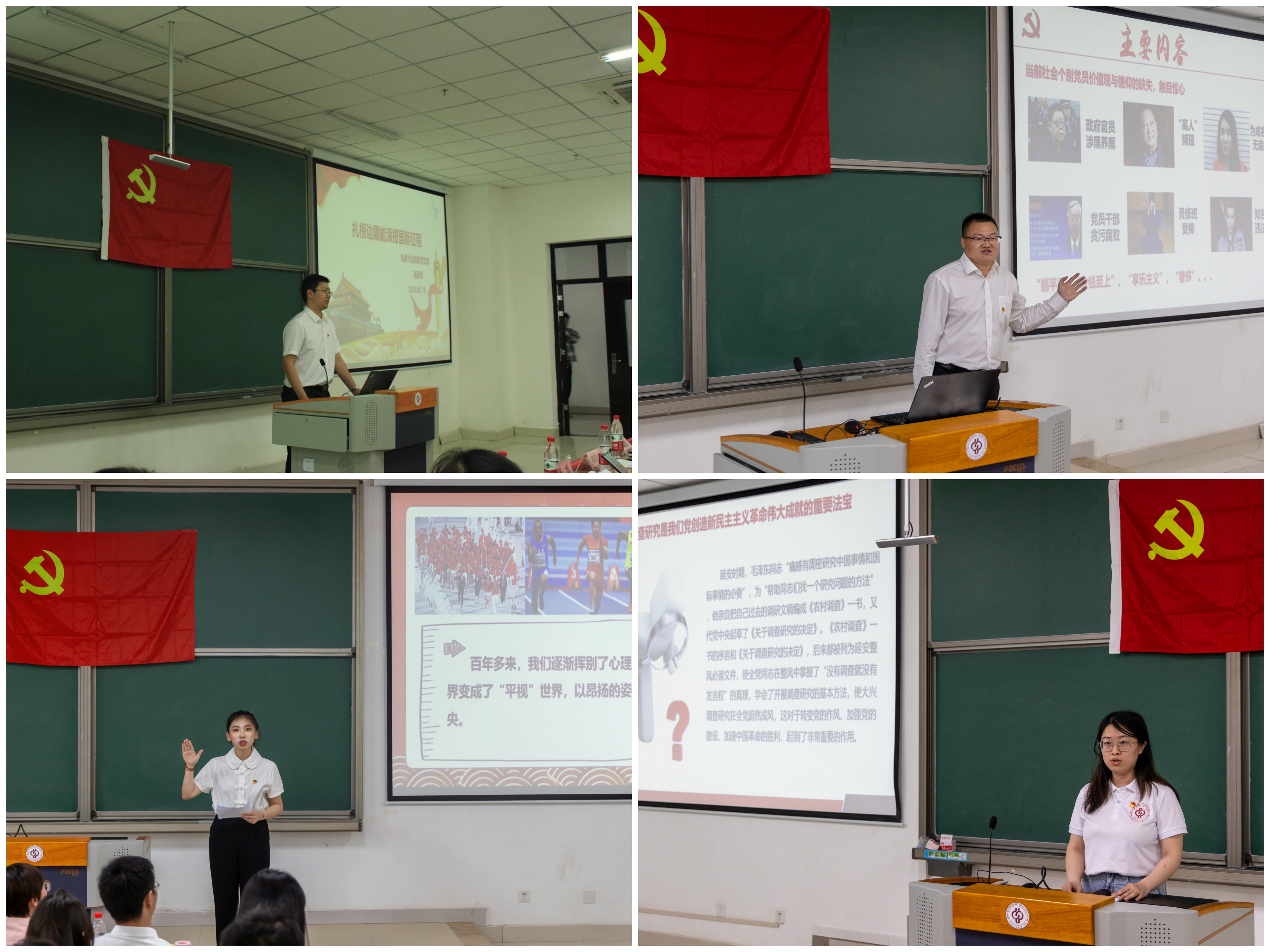 5月12日-5月17日,学院3个教师党支部书记、10个学生党支部书以及党员骨干分别依托各支部讲授专题党课,近500名教师、学生党员、积极分子参与此次活动。各党支部书记和党员骨干结合实际,联系党员思想、工作、生活和作风情况,通过重温党史,引导党员同志深刻领会党的二十大精神和学习贯彻习近平新时代中国特色社会主义思想,切实把学习成效转化为坚定理想信念、锤炼师生党员党性,推动学院高质量发展。