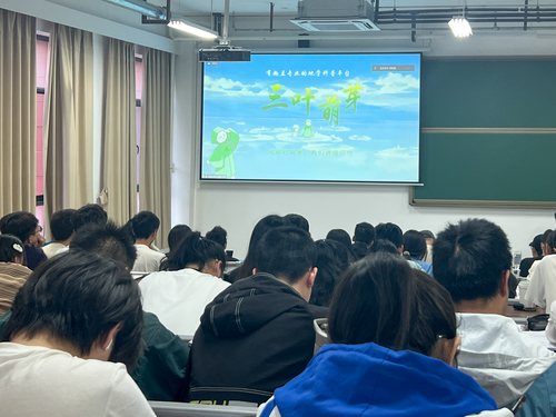 《三叶萌芽—有趣且专业的地学科普》项目获2022年“互联网+”创新创业大赛北京市一等奖(青年红色筑梦之旅赛道公益组)、全国大学生电子商务“创新、创意及创业”挑战赛北京市二等奖、2021年全国艺术创意策划大赛特色奖等奖项。项目成员郭敬薇、南欣宏先后向同学们介绍了“三叶萌芽”团队的组建过程以及产品特色亮点,该项目将地质学科知识与现代技术相结合,以生动可爱的卡通漫画解释地质现象,并制作出绘本读物、景点地图等实体产品。