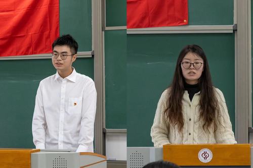 凝聚同辈力量,共与榜样前行。本次组织生活还邀请了研究生第一党支部副书记陈乃昊、宣传委员刘玫瑰与大家分享在校区读研的学习生活心得。陈乃昊为校区原18级本科生,在分享中,他向大家展示了他大一入学时参加母校65年校庆的就餐券,陈表示有幸能与校区共同成长,并在本科结束后继续选择升学至校区,值此70周年校庆,祝愿母校在新时代发展壮大。刘玫瑰本科就读于华中农业大学,考研至校区,她表示在校区求学的时光非常充实,希望同学们珍惜时光,潜心科研,努力成长为志存高远、脚踏实地的有用之才。