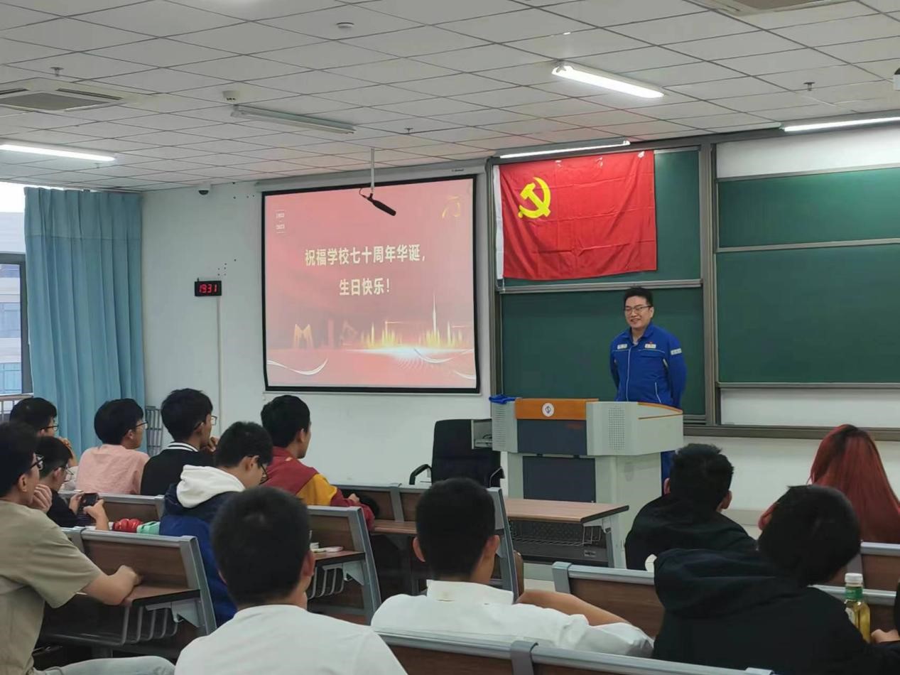 2022年9月22日,为感悟校史文化底蕴,厚植爱校荣校情怀,大力传承弘扬石油精神,工学院化工与环境系本科生第二党支部与22级化工创新班团支部联合开展了校庆主题活动,邀请了克拉玛石化公司优秀校友李帅开展了主题教育,会议由工学院团委书记、工学院化工与环境系本科生第二党支部书记新立主持。