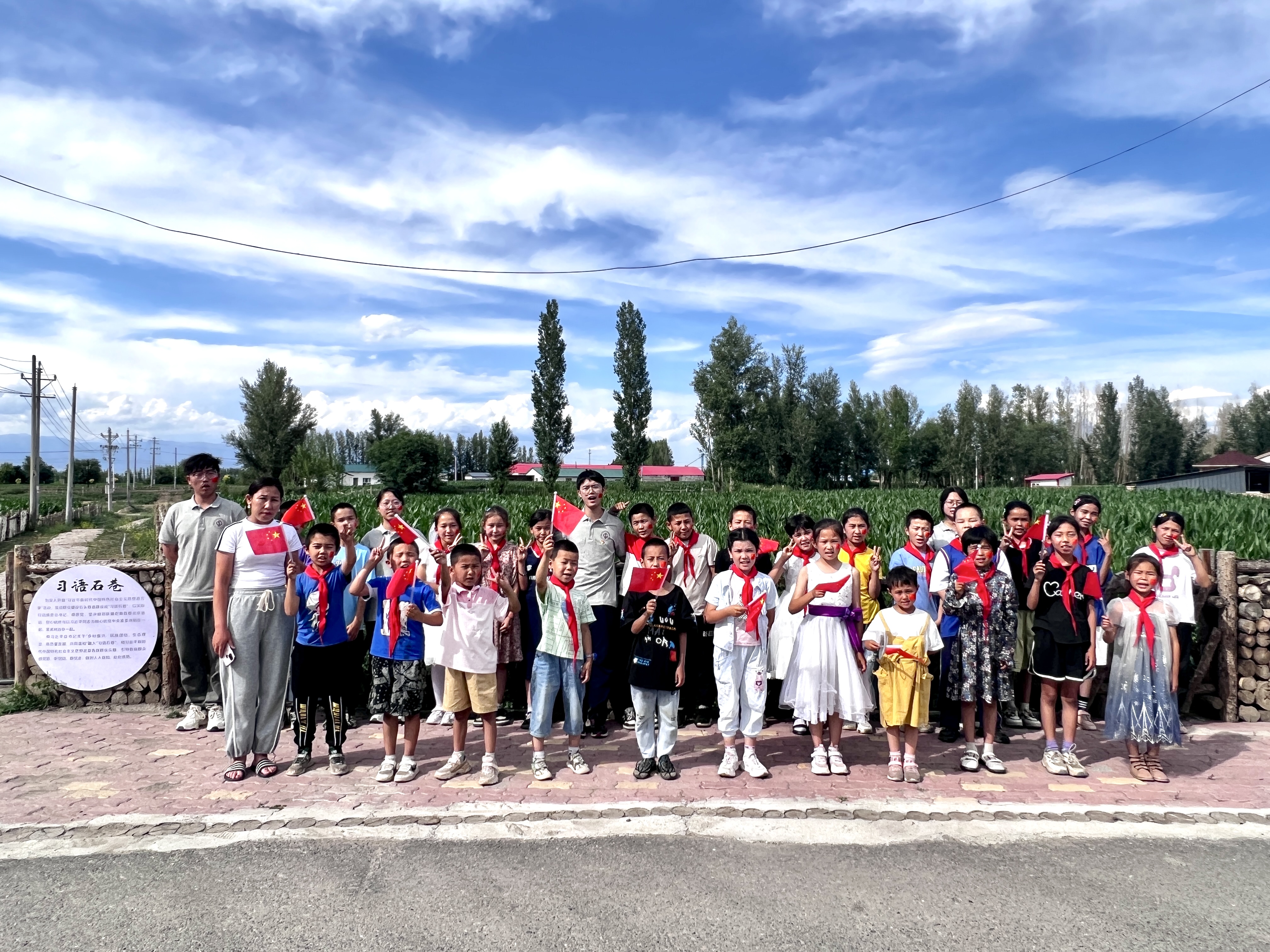2023“推普助力乡村振兴”全国大学生暑期社会实践志愿服务入选团队“青春油缘”社会实践团赴塔城地区额敏县上杰勒阿尕什村(下文简称“上杰村”)开展推普助力乡村振兴社会实践活动。实践团成员走进村民家中,先后对当地普通话使用情况、产业发展、经济收入等进行了走访调研并积极向当地村民推广普通话。在村委会活动室开办了公益推普培训班,并在上杰勒阿尕什村“红领巾小课堂”中开展“学习党的二十大——永远跟党走,奋进新征程”主题教育。以青春视角讲述中国故事,传递党的声音,引导孩子们关心国家大事,勇担时代重任。此外,实践团党员代表为同学们讲授《“平视一代”更当不负重托》微党课,结合石油精神、铁人精神等精神内涵,引导同学们在成长过程中能吃苦、敢拼搏,树立远大理想,厚植家国情怀。
