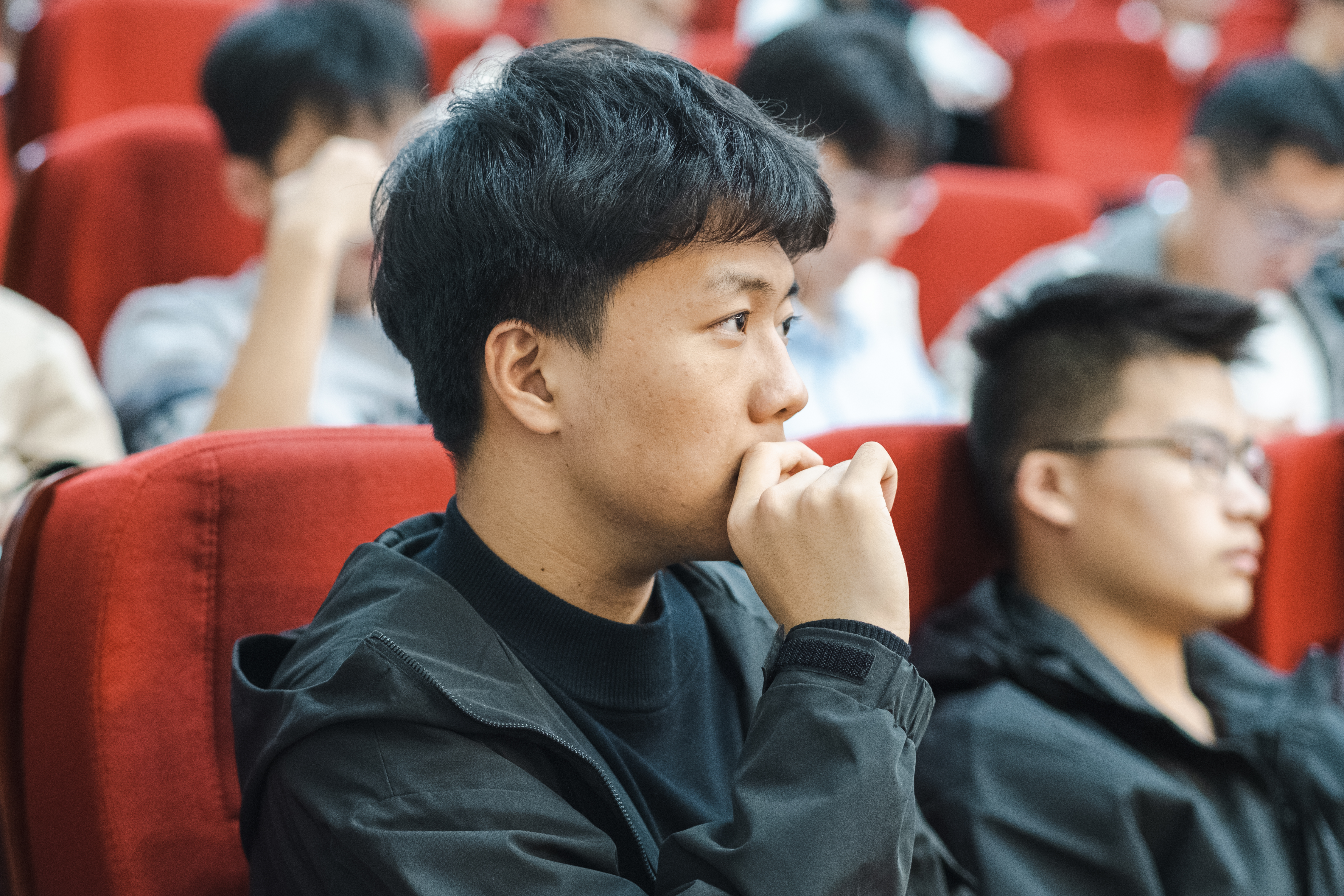 “创新需要工匠精神”是他重点强调的话语。他用自己耗时一年半做的课件和自己的职业感悟为同学们讲述什么是工匠精神。他从“工匠之魂——专注”“工匠之魄——严谨”“工匠之本——创新”“工匠之道——传承”“工匠之心——执着”五个方面详细地介绍工匠精神。他强调“经验来自于自身,熟能生巧”;他还说“我们需要经验但是不要被经验绑架”;他鼓励“要站在巨人的肩膀上成长,多拜师,拜名师”。