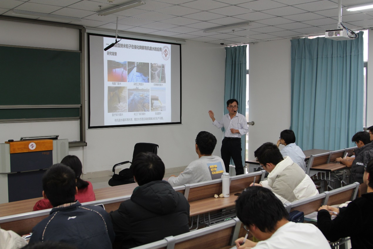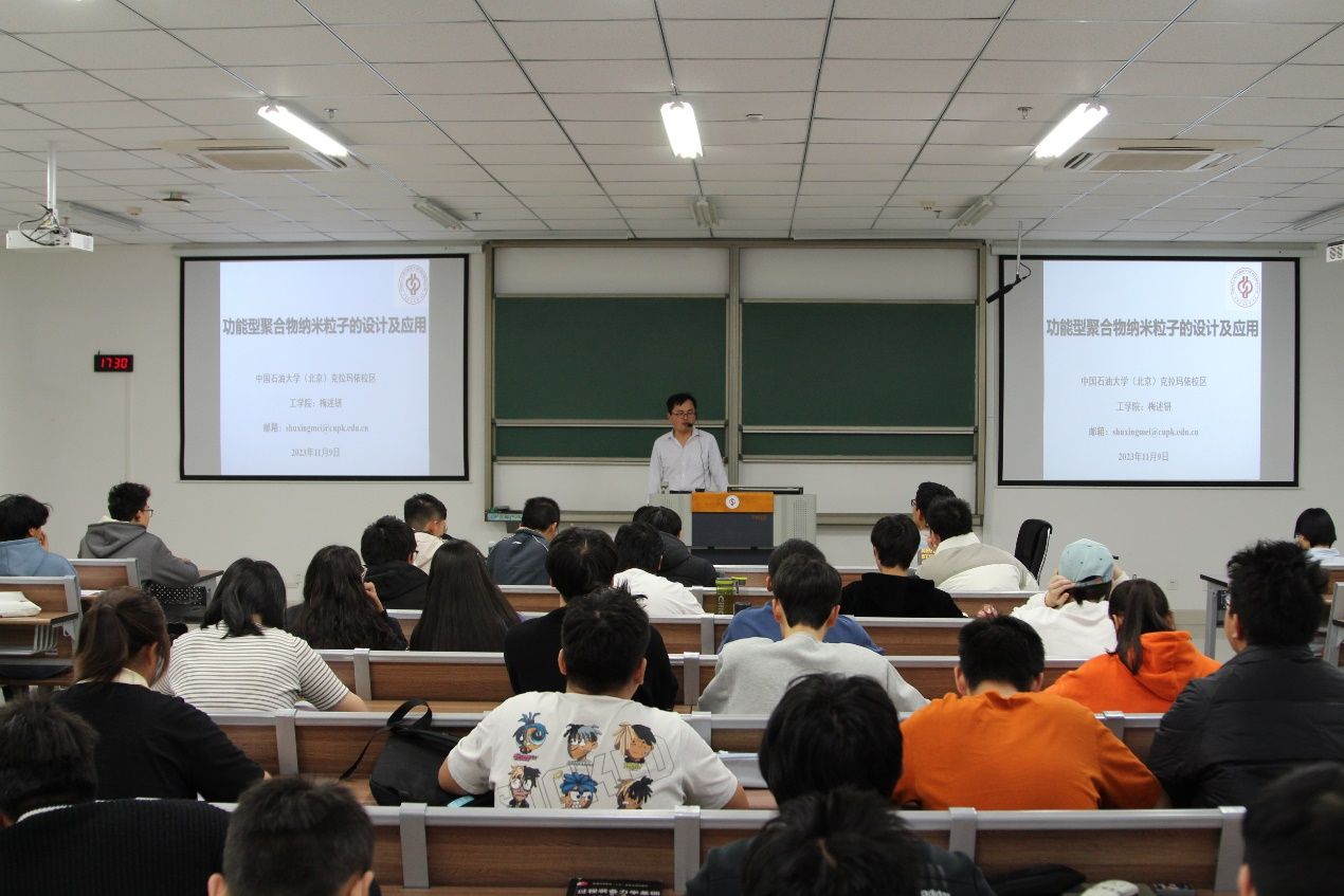 2023年11月9日下午,工学院于C8-I-322教室举办了第五十五期力行讲坛。工学院化工与环境系专任教师梅述钘作了《功能型聚合物纳米粒子的设计及应用》的专题讲座,工学院90余名师生聆听了讲座。