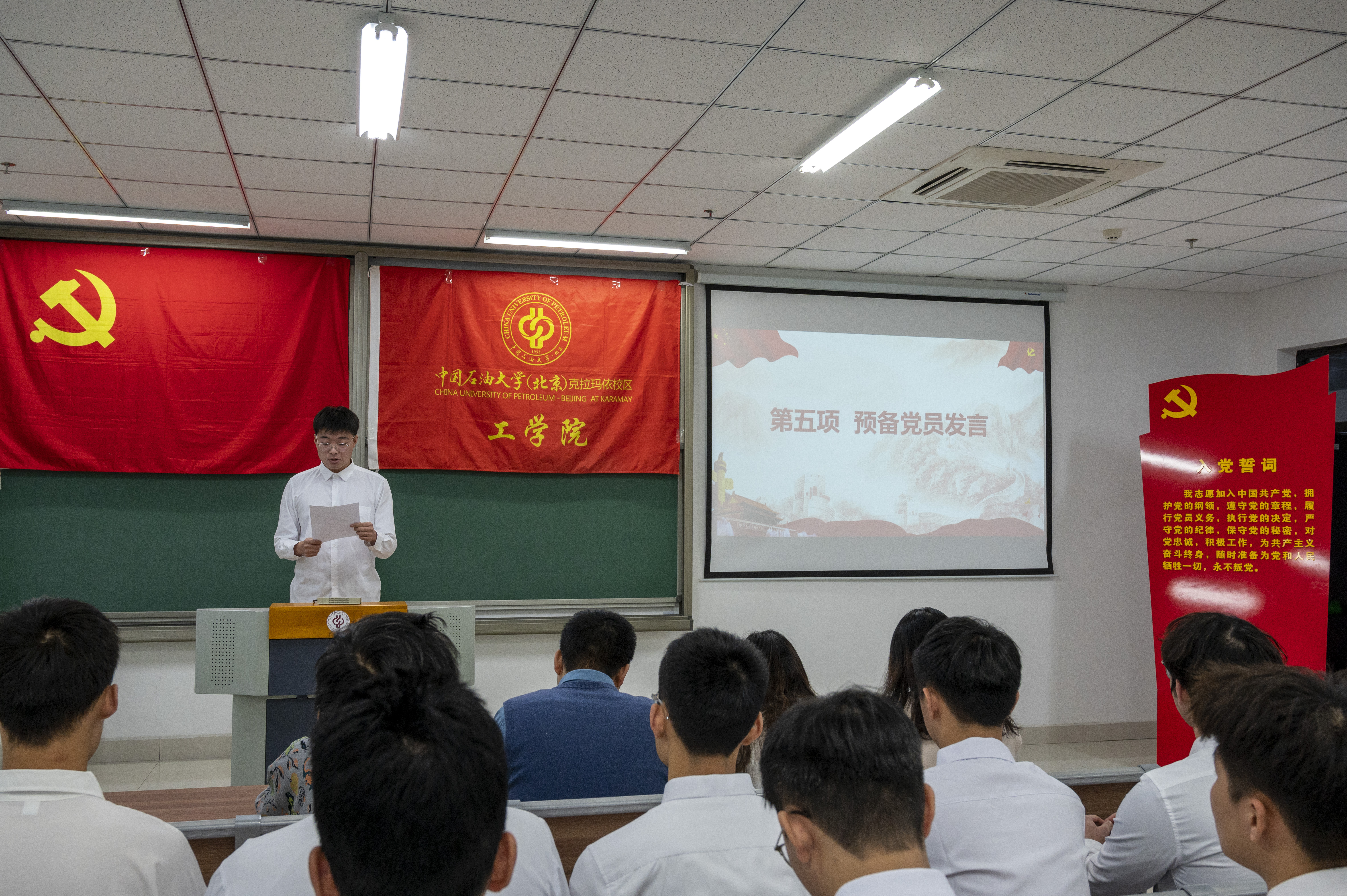 为进一步提高党性修养,增强预备党员的责任感和使命感,加强对党员同志的思想政治教育,激励广大党员同志坚定理想信念,践行党的宗旨,12月13日下午,工学院党委举行新党员入党宣誓仪式,党委副书记刘凡瑀、学生党支部书记、35名新党员和党员代表参与此次活动。