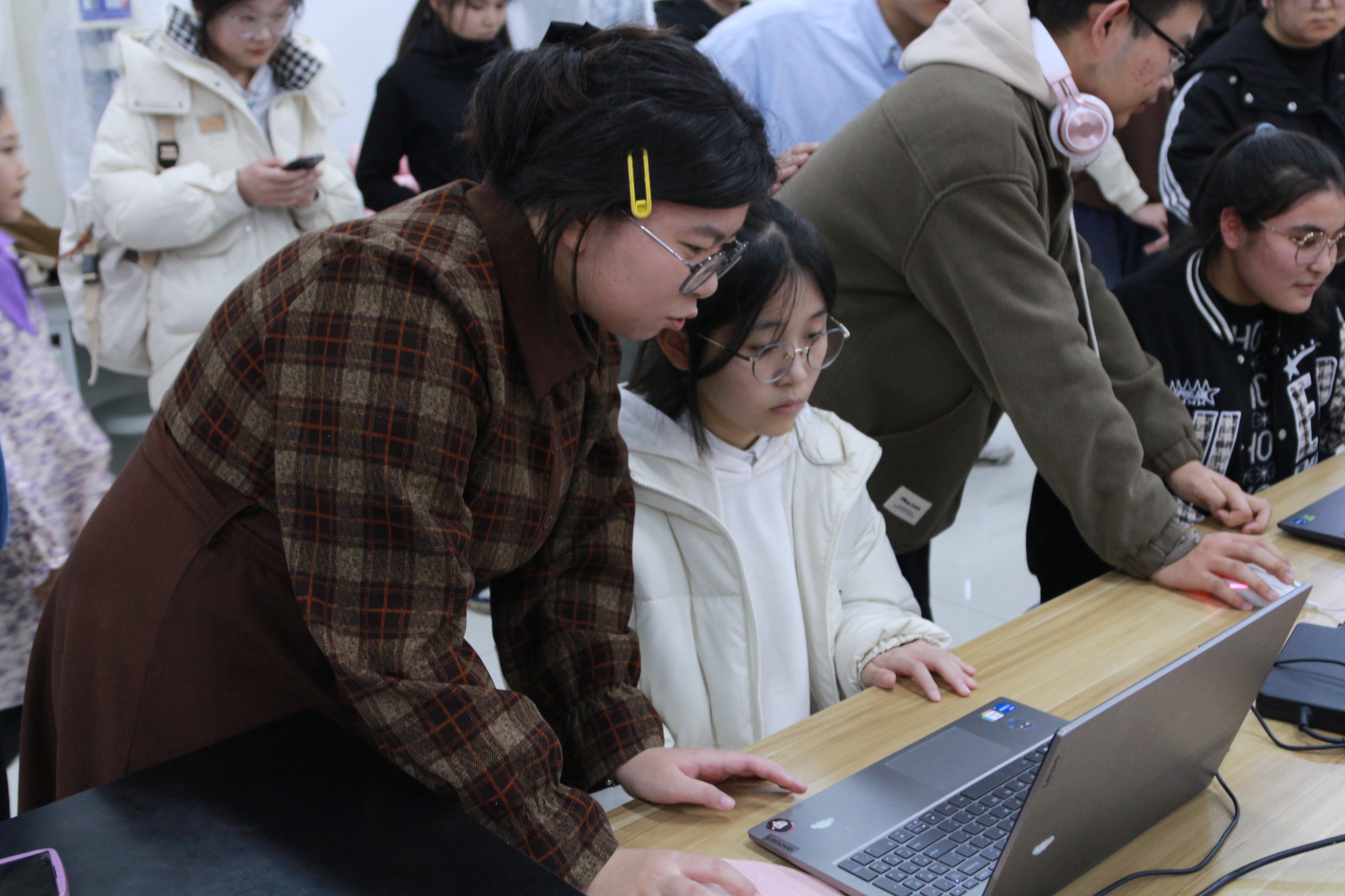 “油苗”们随后参观了校区机器人创新实验室。在实验室内,工学院机械专业教师、机器人队主教练姚彦博老师,介绍了机器人创新实验室和队员们的训练情况,组织“油苗”们在大学生们的帮助下,亲手操作机器人进行竞技。