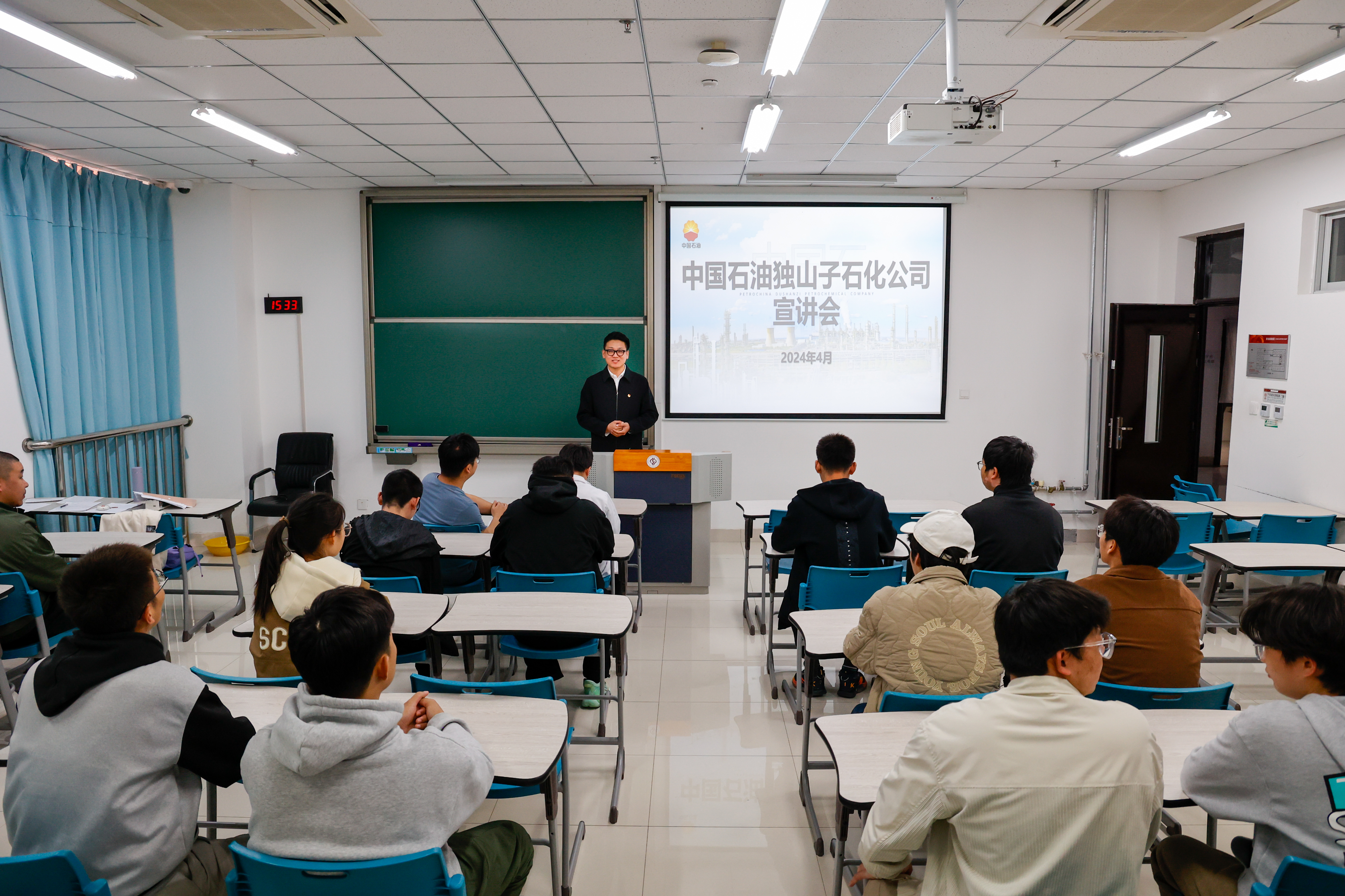 4月13日下午,中国石油天然气股份有限公司独山子石化分公司团委团青发展主管吕顺一行来校开展“融情关爱石大学子”活动,工学院毕业班辅导员陈烁及28名签约独山子石化2024届毕业生参加活动。