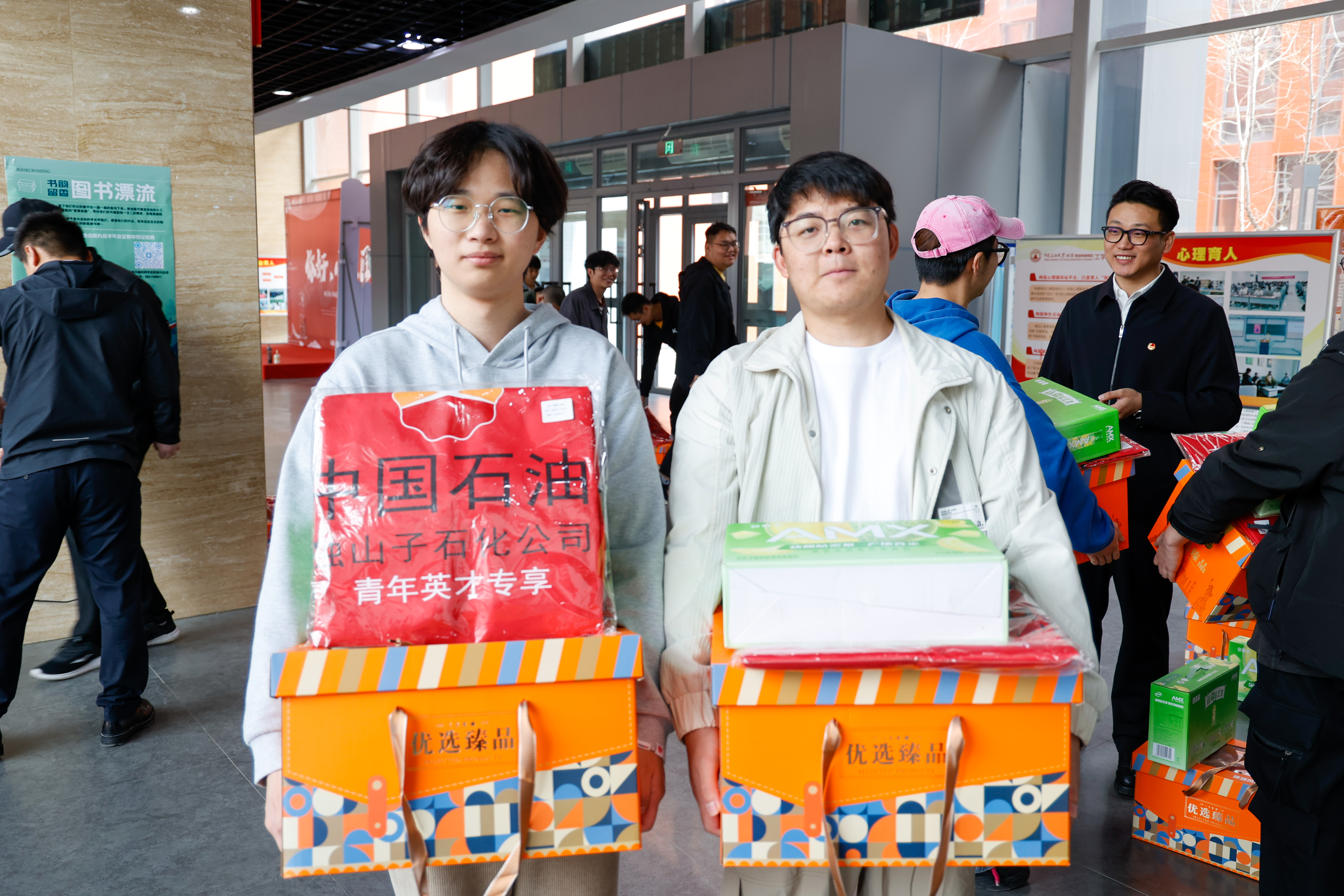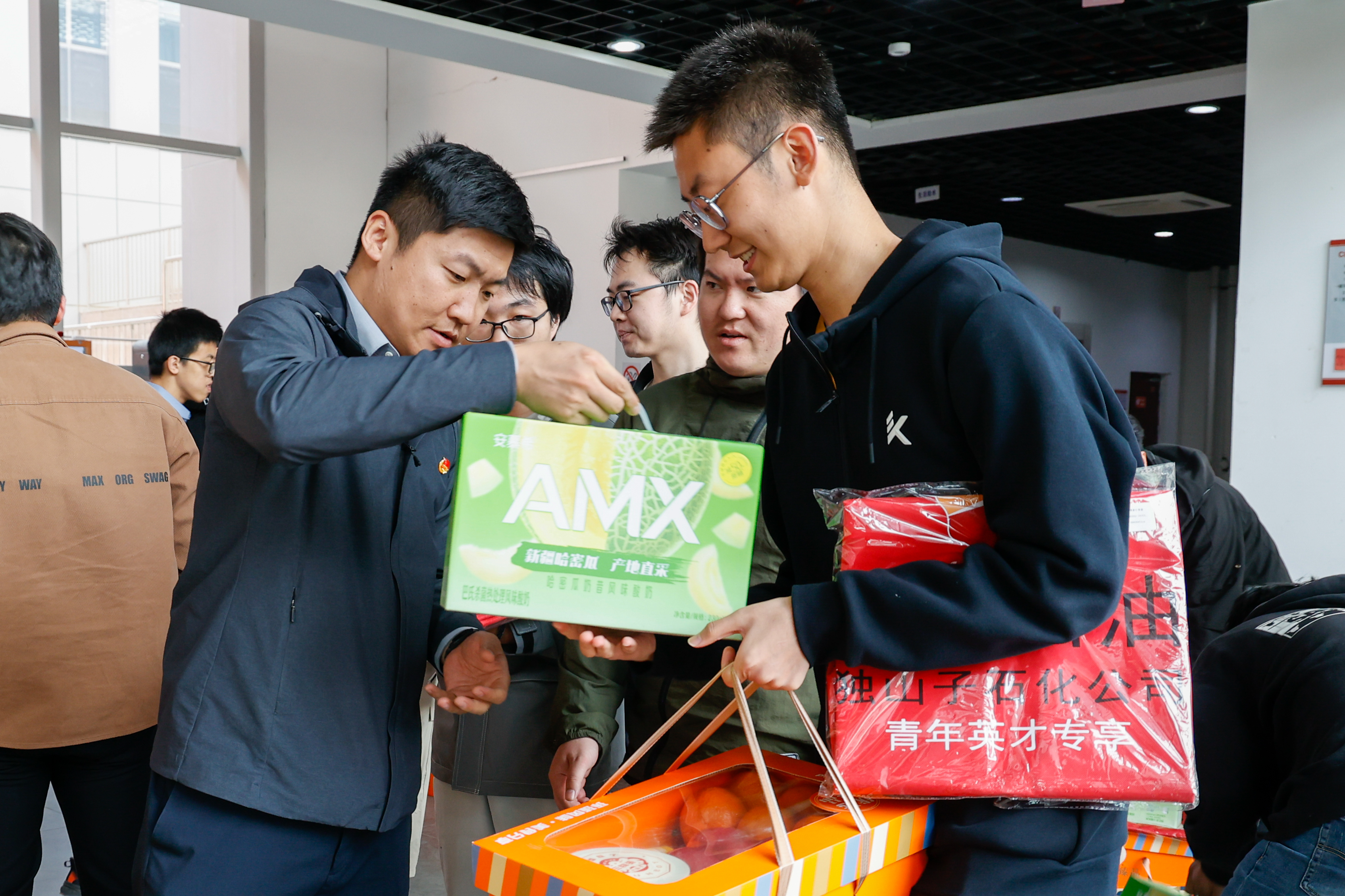 活动最后,企业代表为同学们送上零食大礼包、日化用品及行李打包袋等暖心慰问品。