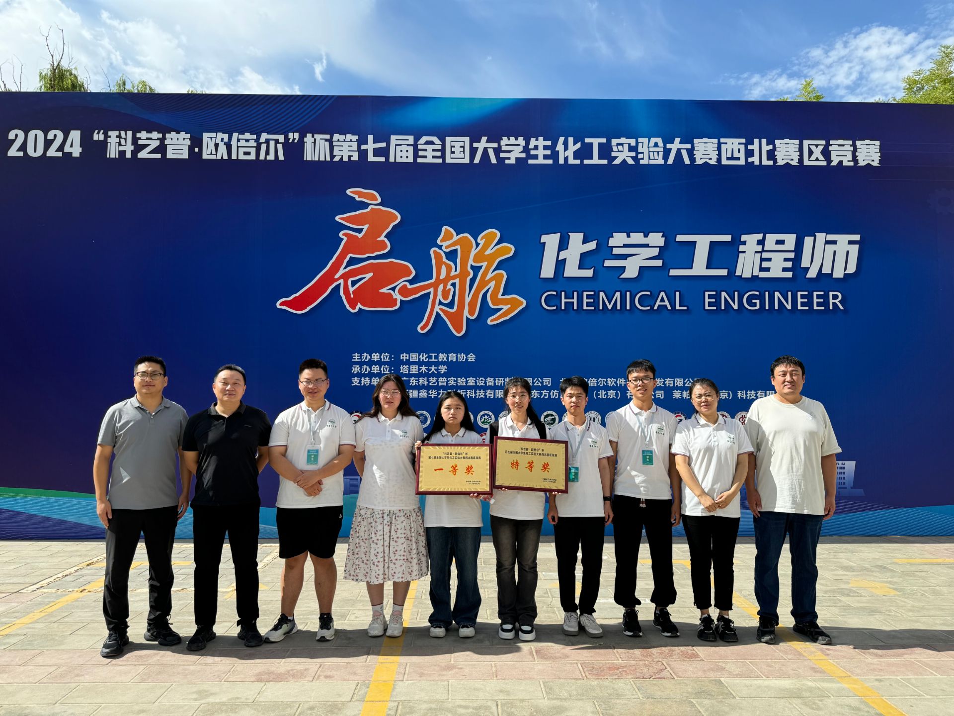 本次全国总决赛共有84支队伍参赛,是从全国六个赛区、350余所高校化工类专业学生组成的523支队伍中选拔出来的。校区王宇涵、丁林杰、陈超的队伍在指导老师李楠、刘舜、热则耶·热合米图力的悉心指导下,先获得西北赛区特等奖和全国总决赛的参赛资格,再经过精心备赛,最终获得全国一等奖。