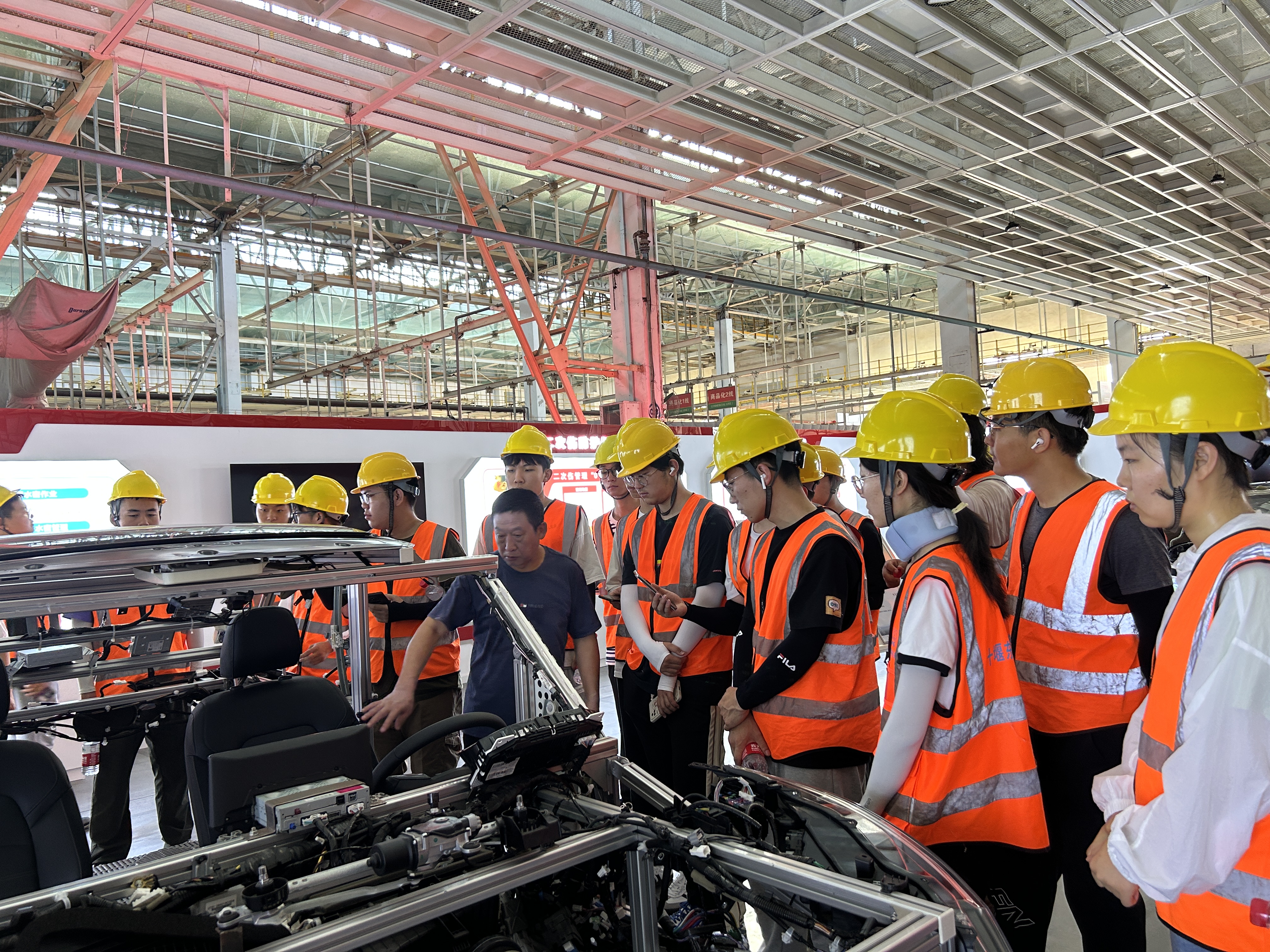 实习过程中,在东诚大学生实习实训中心的老师们的带领下,机械专业的同学们先后实地参观了汽配部件智能生产加工厂、汽车研发中心、智能一体化装配生产线等,不仅让同学们深入了解了企业生产运行的模式,而且让同学们亲身经历了汽车产业的生产加工全流程。