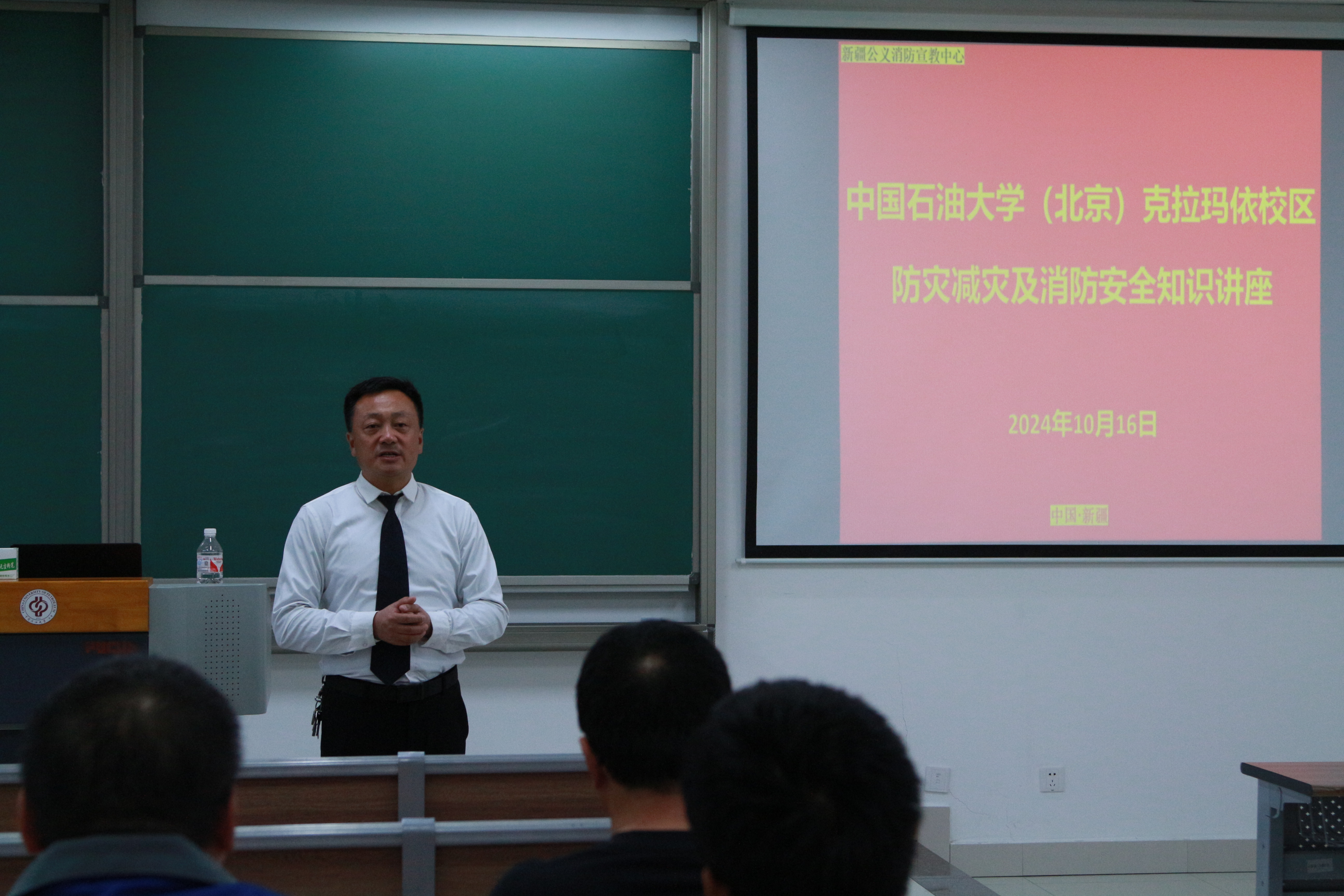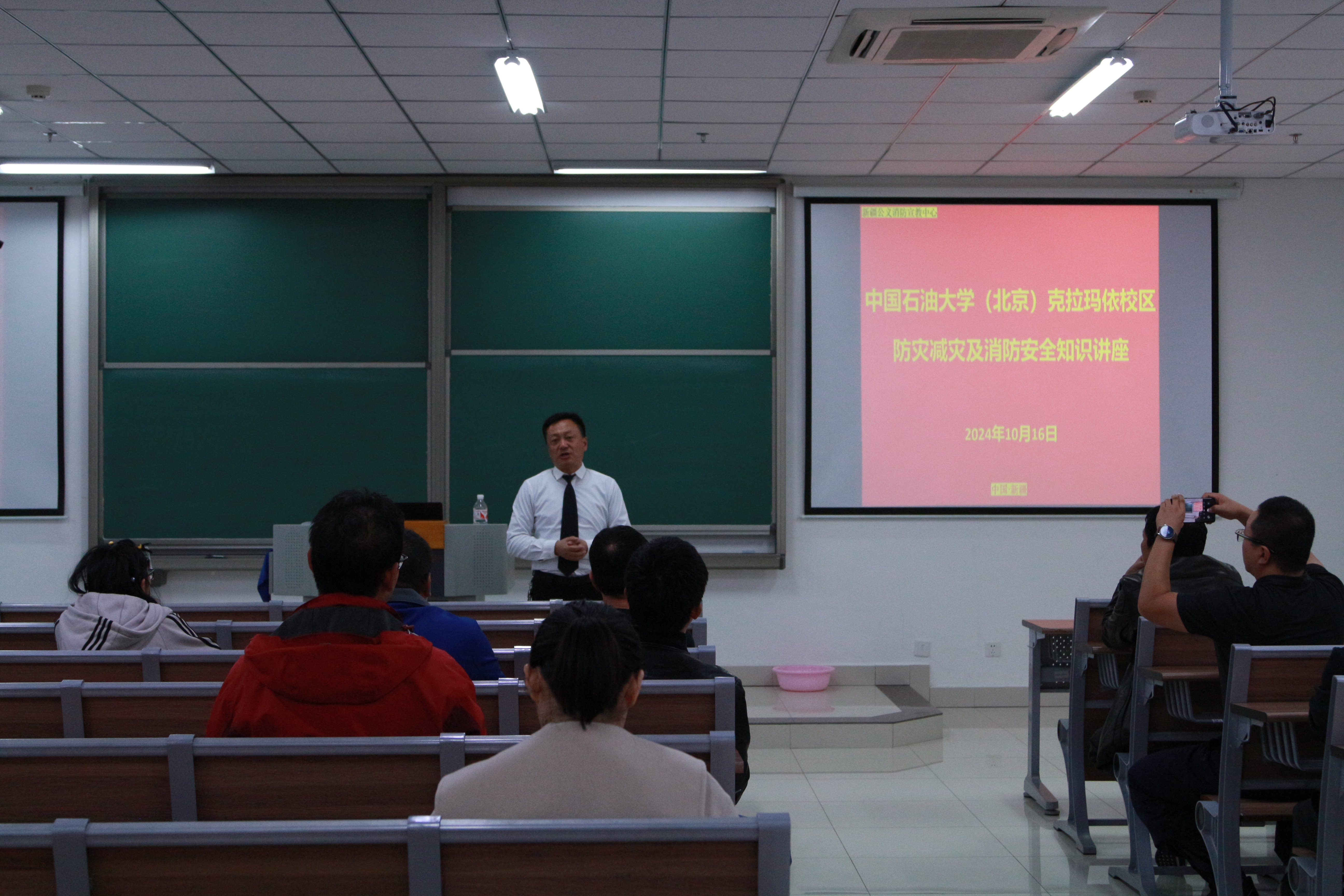 2024 年 10 月 16 日 18:00 时,为认真贯彻落实习近平总书记关于安全生产重要指示精神,加强安全生产工作部署要求,工学院在 C8-I-214 教室开展了 2024 年防灾减灾及消防安全知识培训活动。此次培训由乌鲁木齐公义消防知识宣传中心优秀教员吕文军担任授课人,旨在深刻吸取近期各地火灾事故教训,有效防范遏制重特大火灾事故。