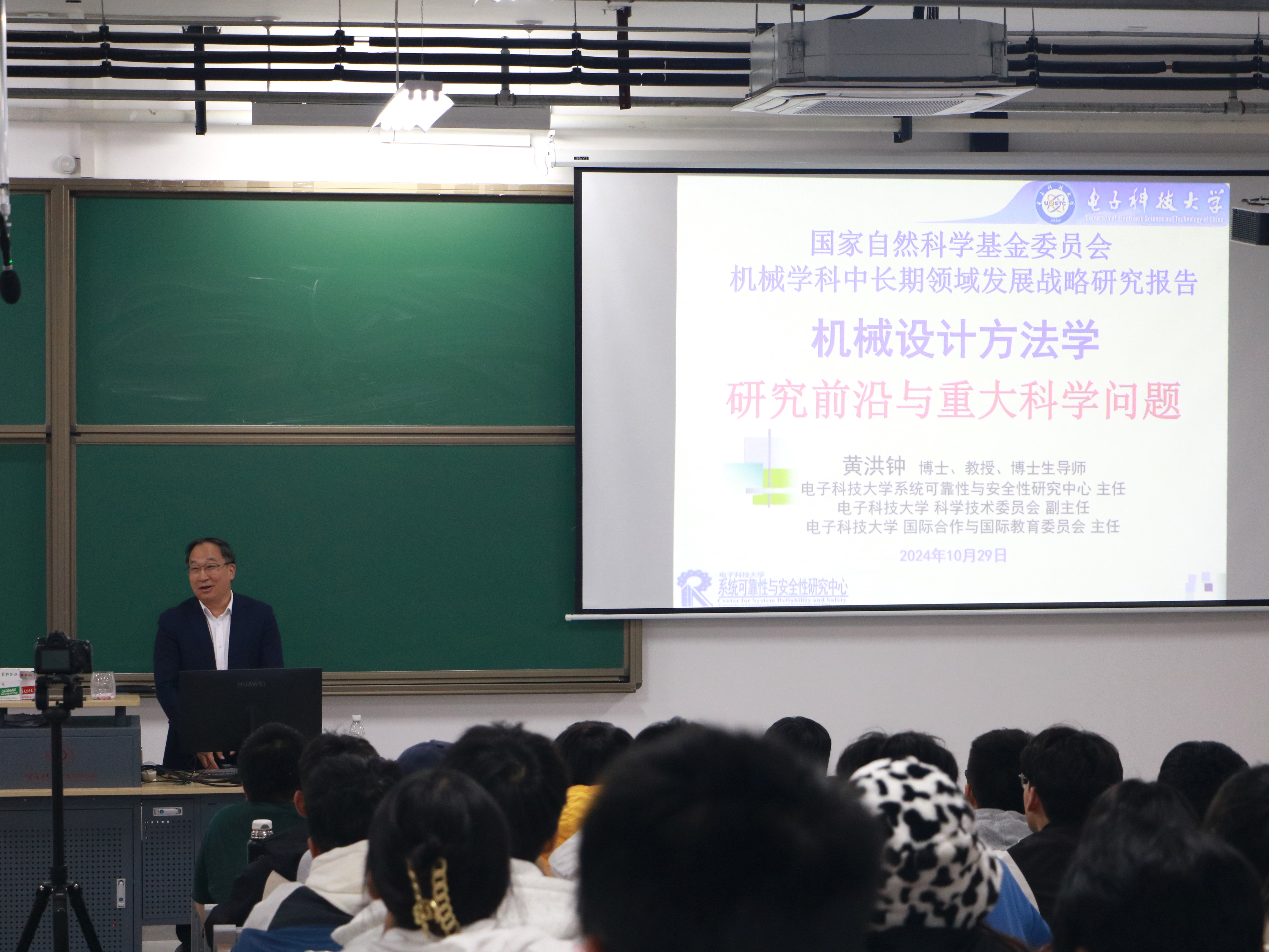 最后,黄洪钟对机械专业内涵及其研究范围进行介绍,提出机械设计方法学内涵朝着 “创新、智能、精益、保质” 方向发展,并阐述了现代产品创新设计、复杂机电系统精益设计、复杂装备可靠性分析与保质设计等方面的科学意义,为同学们了解机械专业未来发展提供了新视角。