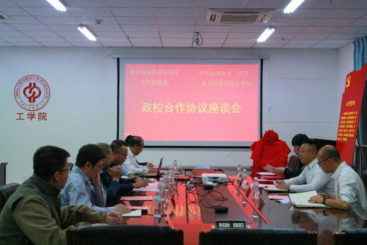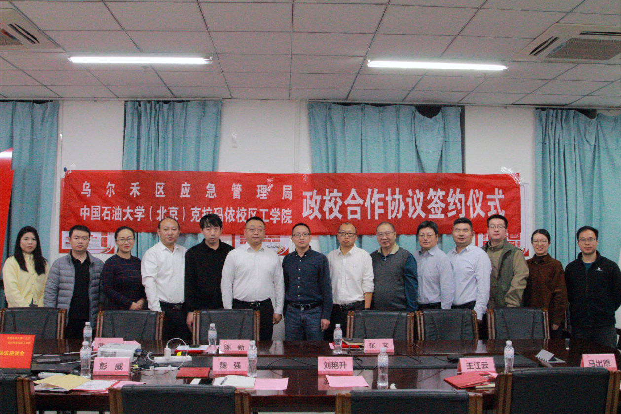 与会双方分别介绍了各自基本情况。校区安全工程专业依托学校办学特色与优势,聚焦石油、天然气和煤等化石能源开采及加工领域,培养石油石化、煤化工及其他化工安全生产和管理所需人才,服务国家和西部经济社会发展。乌尔禾区围绕自治区九大产业集群,发展并建设了油气资源开发、新能源新材料、渔业养殖、文旅产业等4大优势产业,产业发展遍布三次产业链条,为安全学科研究以及应急管理工程提供了难得的实践基础。签约、揭牌仪式上,双方共同签订了《乌尔禾区应急管理局与中国石油大学(北京)克拉玛依校区工学院产学研合作协议》,并为《产学研合作基地》揭牌。