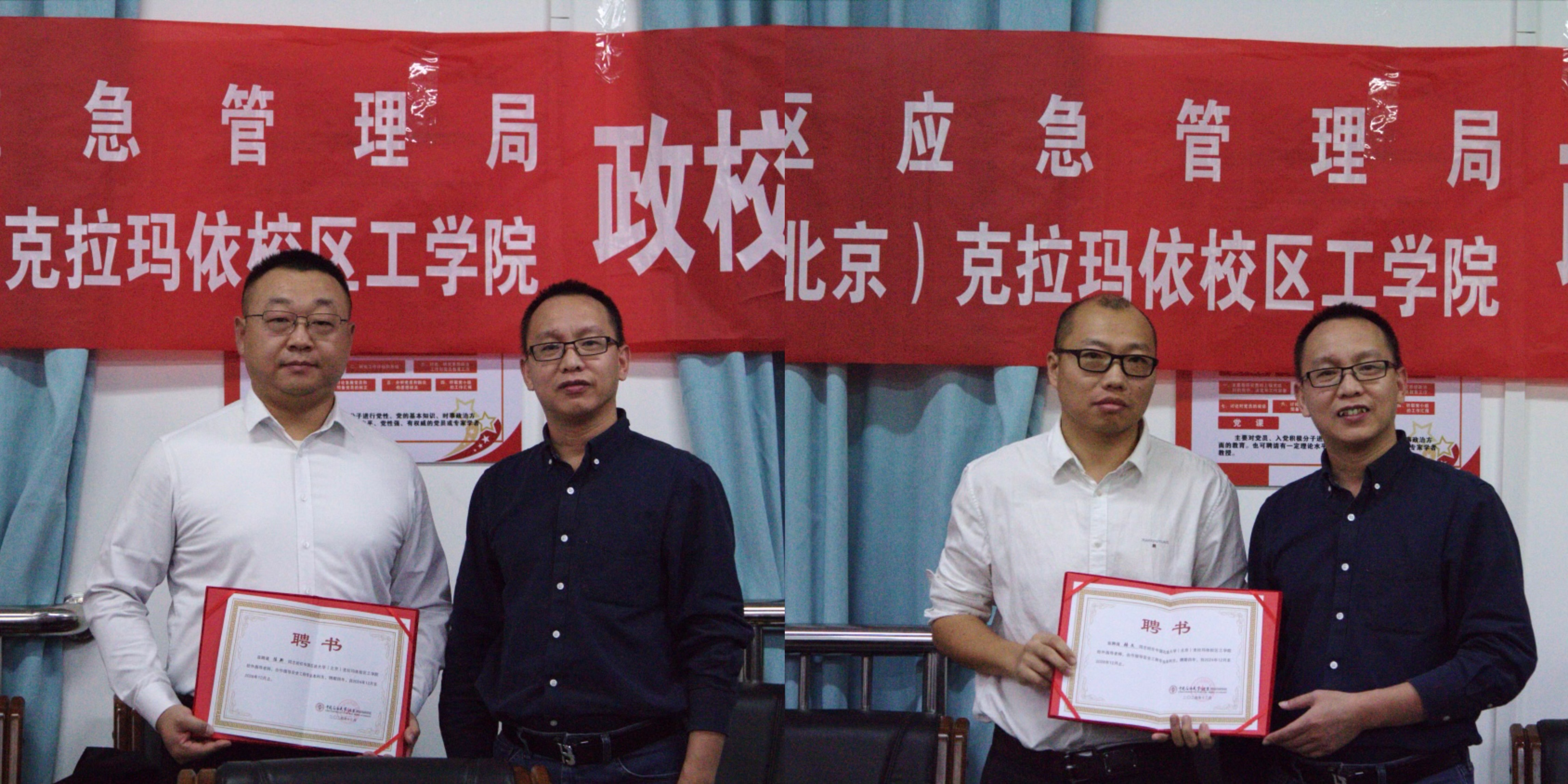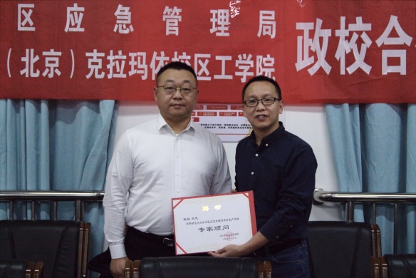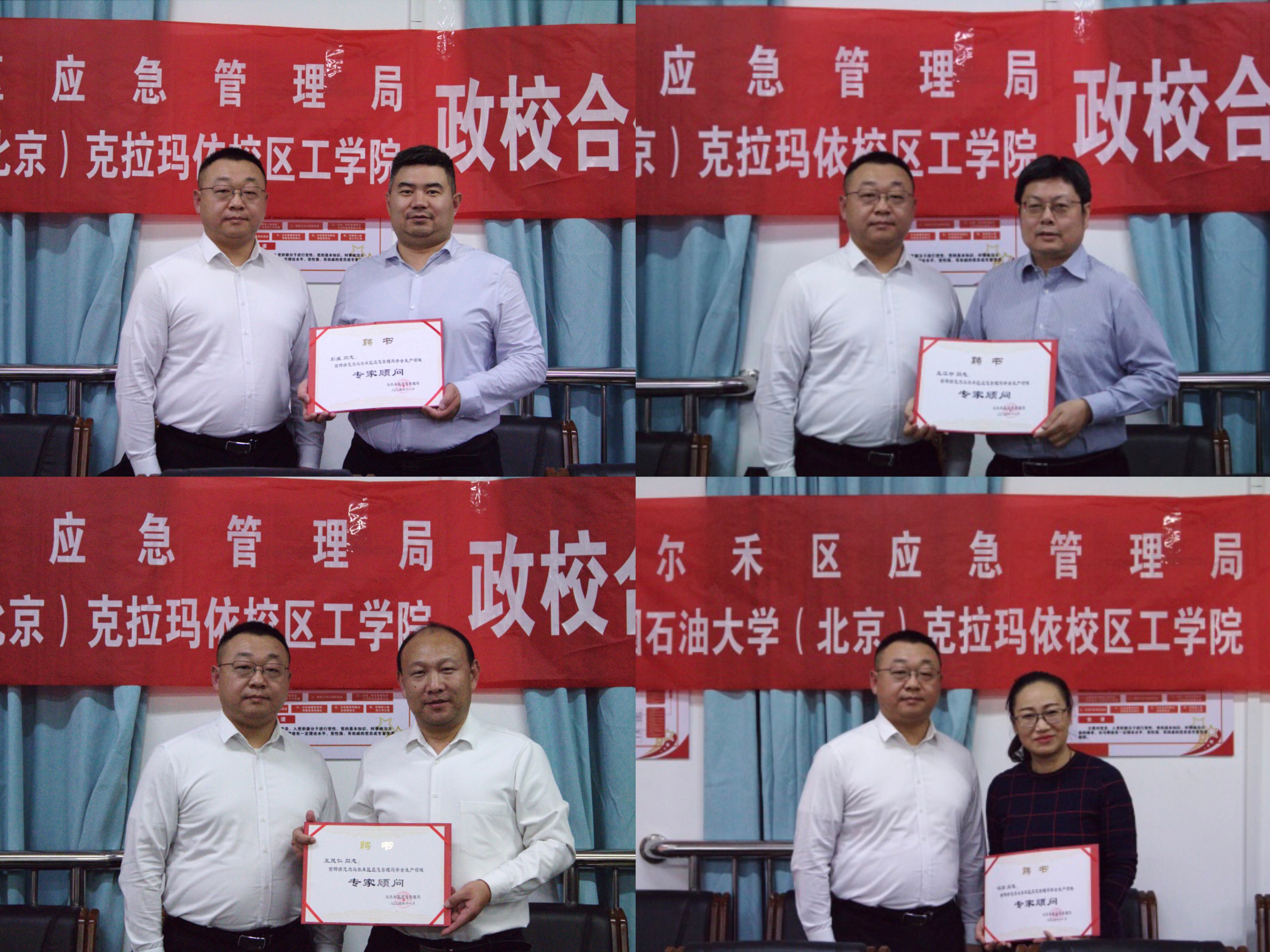 为更好发挥专家学者的科技支撑作用,防范化解安全生产与应急管理领域面临的新风险,不断提升安全监管水平和应急能力,乌尔禾区应急管理局为校区5名教师颁发了应急管理专家聘书。同时,校区工学院为乌尔禾区应急管理局2名实践经验丰富的专家颁发了校外导师聘书,助力安全工程专业实践教学四年不断线,校内外协同教学体系构建,促进安全管理领域高层次应用型人才的培养。