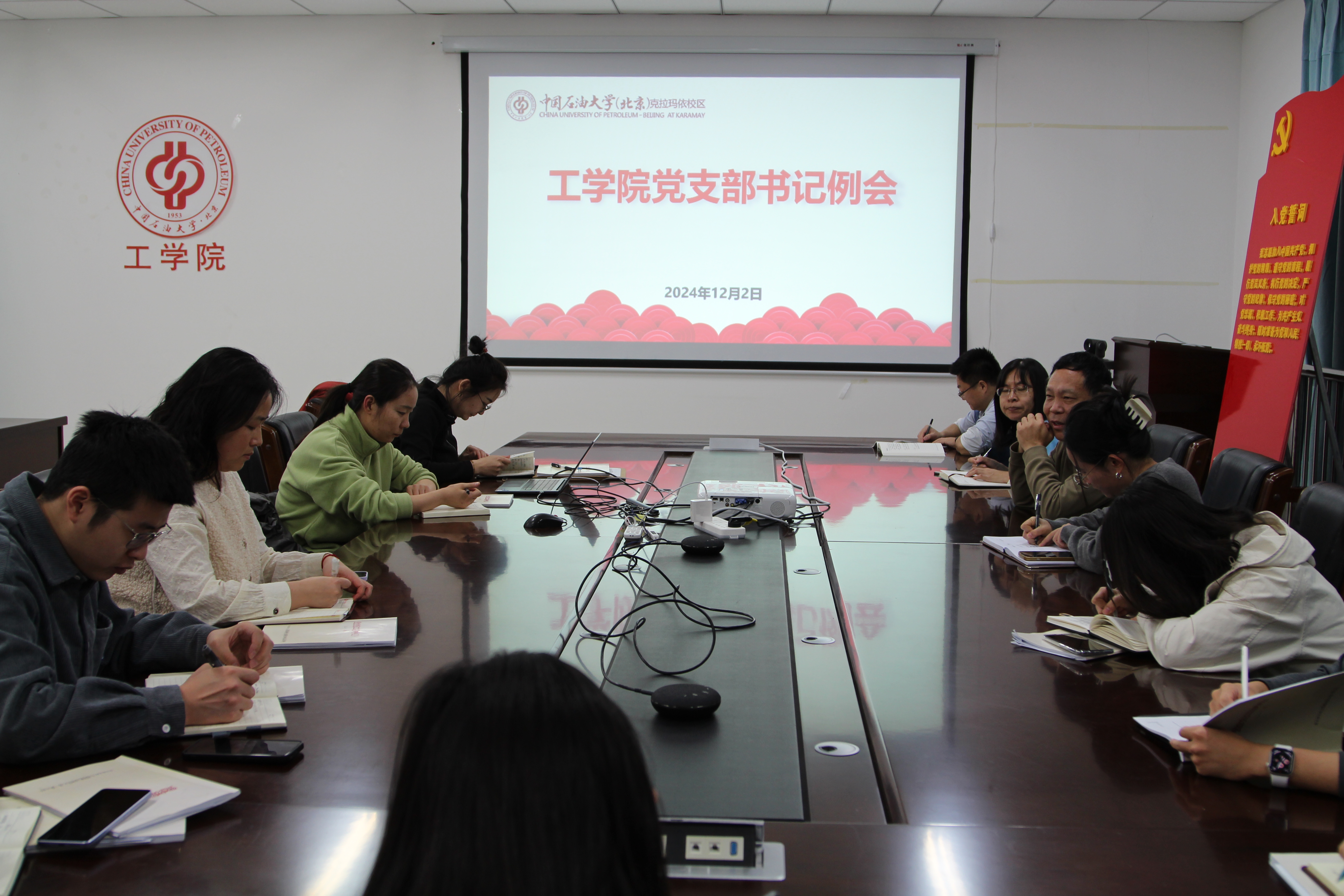 为深入贯彻落实党的二十届三中全会精神、全国教育大会精神,进一步强化学院基层党支部建设,提升党支部党务工作者的业务能力和综合素质,工学院党委于12月2日召开党支部书记例会,传达、学习校区会议精神和通知要求,部署近期重点工作,开展支部工作规范化培训。会议由学院党委书记谢庆宾主持,各教工党支部及学生党支部书记参加会议。