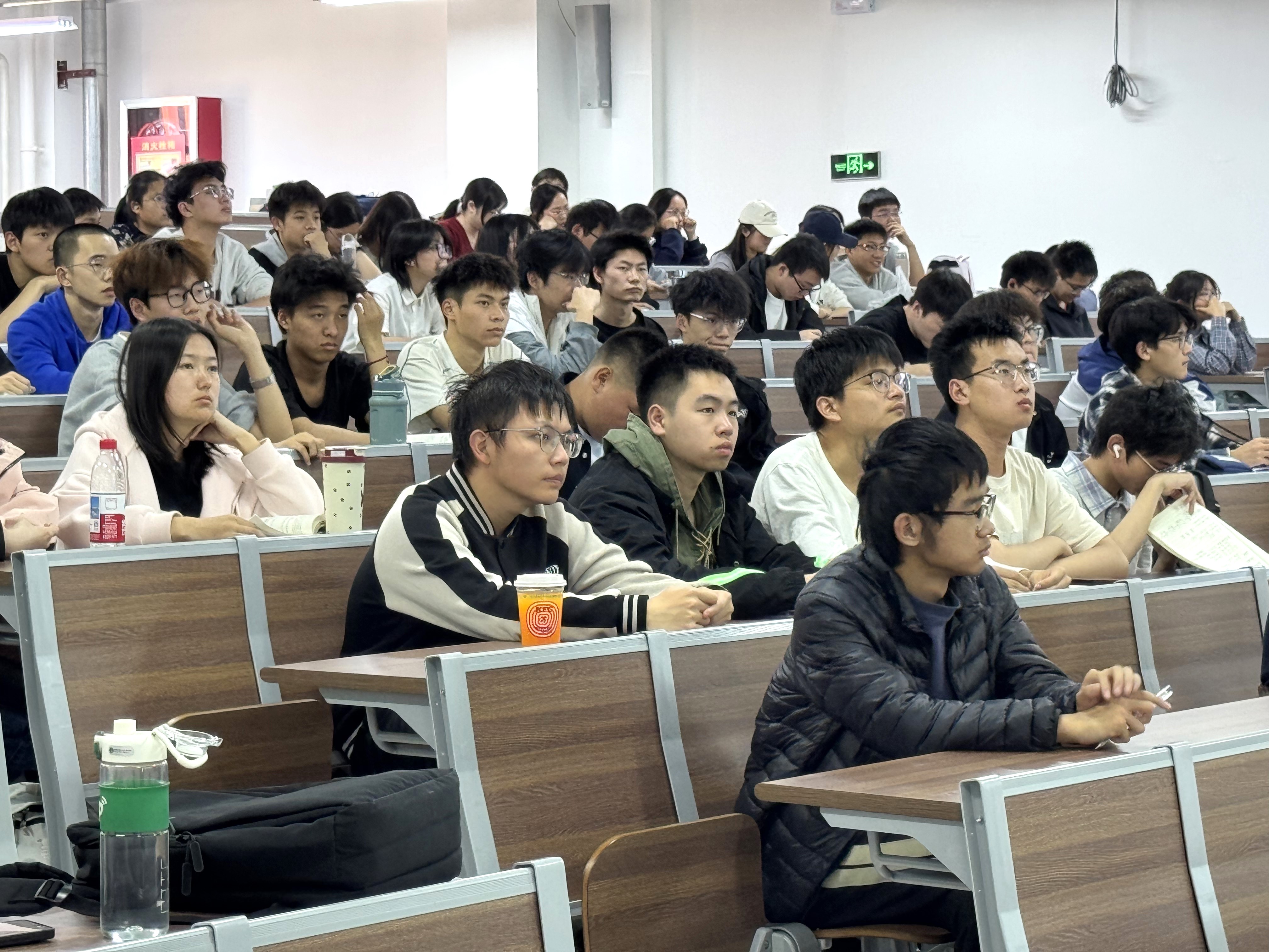 讲座伊始,郭一帆以“考研还是就业”切入主题,结合自身升学思考与求职经历,从科研能力要求、行业发展前景、岗位匹配度等方面,引导同学们理性分析、明晰选择依据,提前做好职业生涯规划。