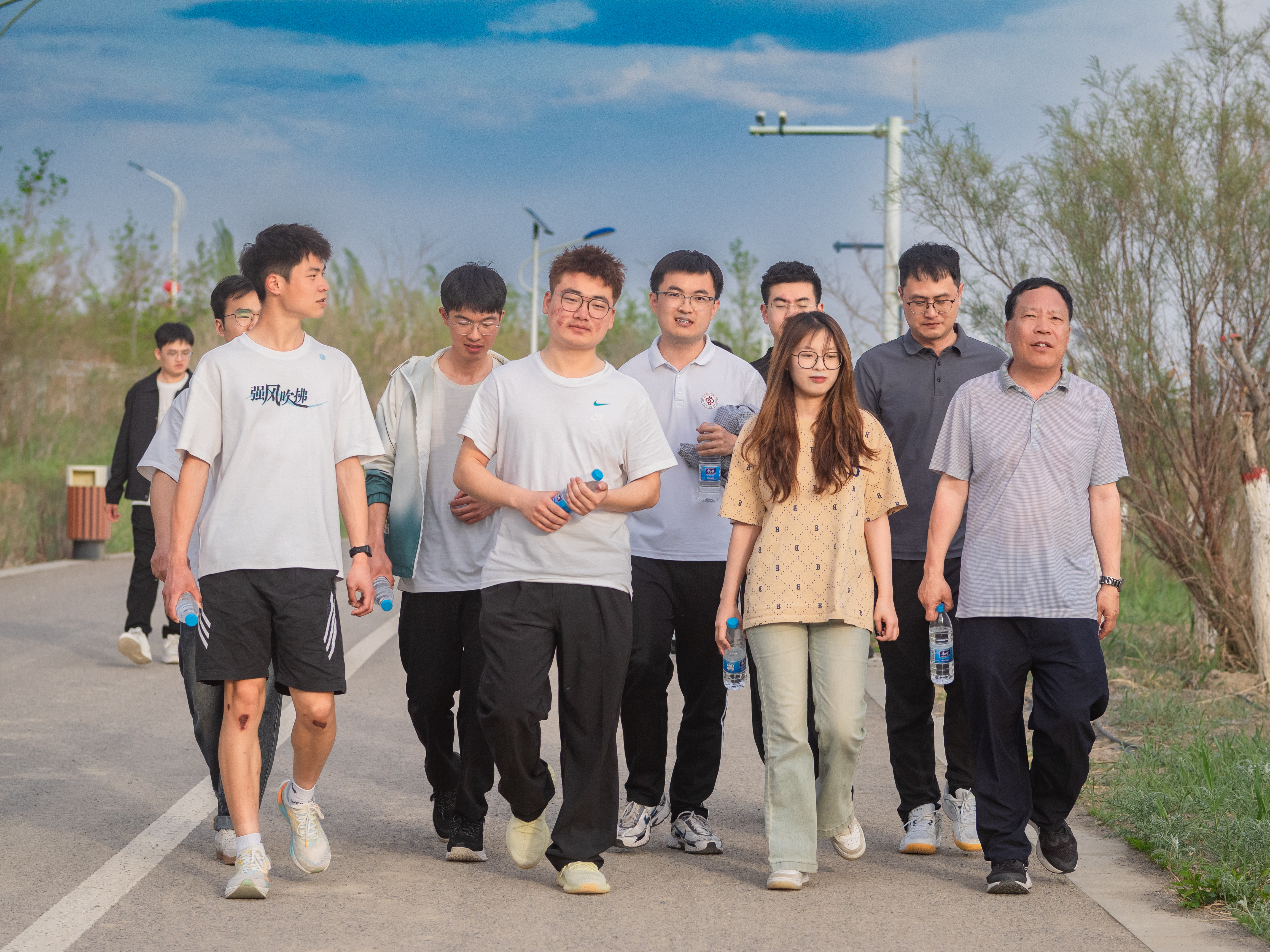 环湖同行时,谢庆宾与学子畅谈专业发展、校园生活,在平等对话中传递育人温度,用切身经历启迪青春理想。李冰结合学生家庭背景与兴趣特长,建议将专业学习与个人优势融合,在实践积累中探索服务家乡发展的创新路径。赵旭亮在指导学生备赛技巧的同时分享校园生活经验,用亲身经历解读学校"以生为本"的育人理念。