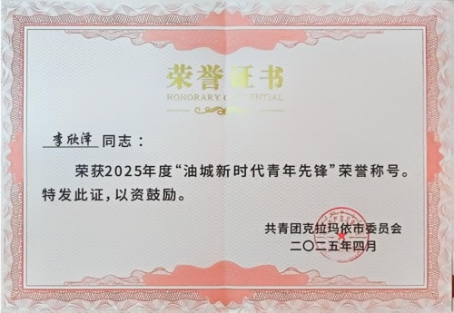 近日,为宣传先进、树立榜样、激励广大油城青年把青春奋斗融入党和人民事业,勇做中国式现代化建设的先锋力量,充分展现新时代青年的精神风貌和价值追求,共青团克拉玛依市委员会对我市先进青年模范代表进行了表彰。校区工学院教师李欣泽获评克拉玛依市“油城新时代青年先锋”荣誉称号。