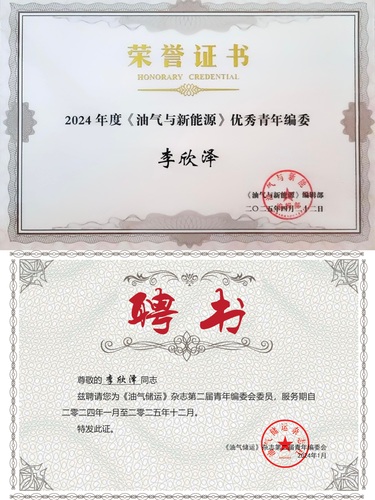 李欣泽目前完成克拉玛依市创新环境建设计划(创新人才)1项、企业课题1项,在研自治区面上基金项目1项、自治区教改项目1项、校启动科研项目1项、企业重大课题2项。以第一作者发表SCI、中文核心期刊论文40余篇,获得专利及软件著作权10余件,出版学术专著2本。受聘《油气储运》和《油气与新能源》杂志青年编委会委员,获评2024年度《油气与新能源》优秀青年编委。作为“两区”科技服务专员,深入国家管网西部管道公司生产一线,切实解决企业技术问题。
