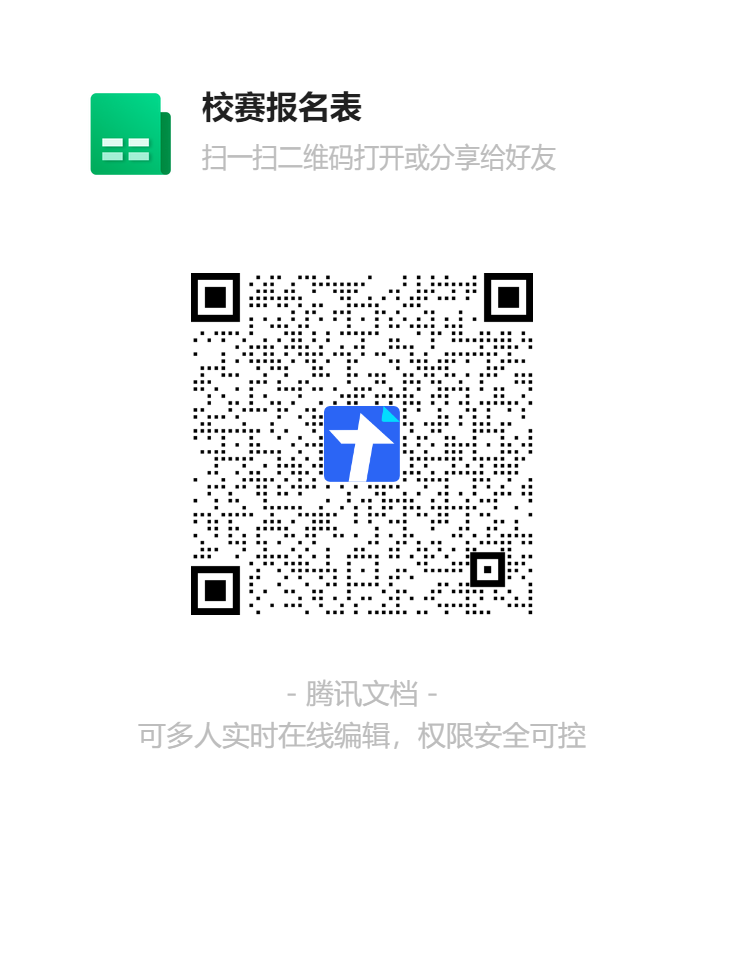 【腾讯文档】校赛报名表 https://docs.qq.com/sheet/DUmJJeEx2UmlpV3BM?tab=BB08J2