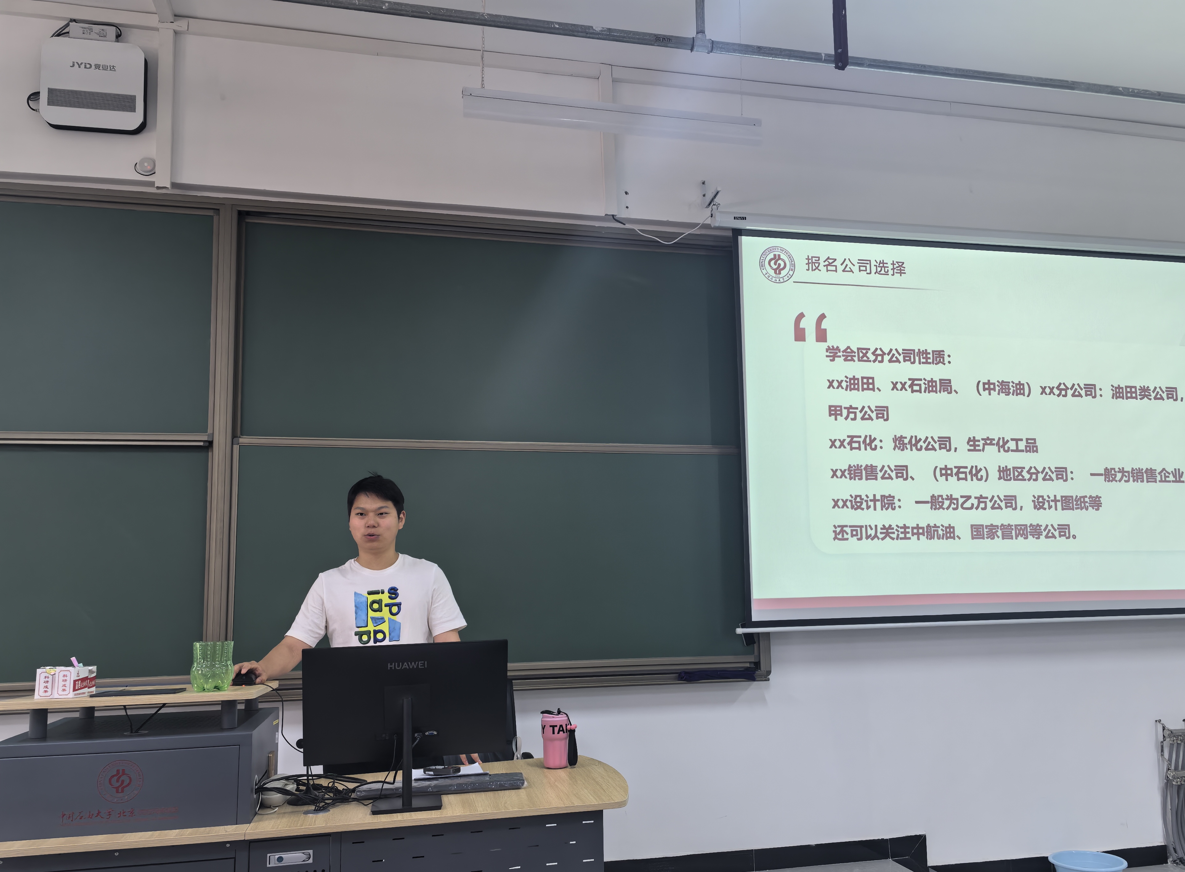 为增强学生学业规划能力、明晰未来发展路径,近日,工学院于C4楼105、305教室开展了自动化、油气储运工程专业的考研就业经验分享会。此次活动由2021级自动化专业学生余宇芊、赵洋、王耀光、郑清阳和2021级油气储运工程专业学生杜晓磊、潘一帆、王一蒲、涂鹏8人担任主讲,辅导员何思主持,针对油气储运工程、自动化专业2022级本科生的就业和升学困惑,提供全面而具体的分享和指导。