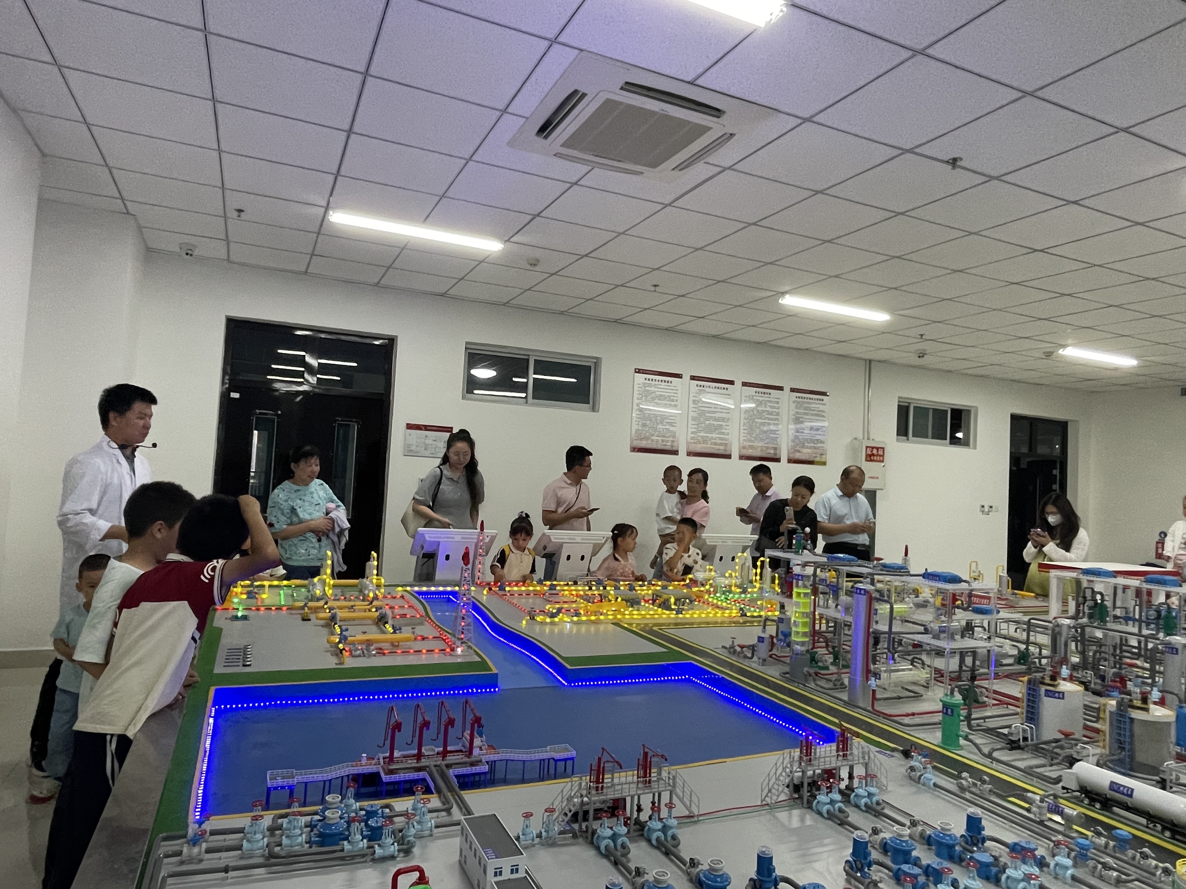 首先在专业教师的带领下,家长和孩子们参观了储运工程仿真实验室。孙杰老师通过生动的讲解,向小朋友们展示了管道运输的奥秘。随后,宋琪老师指导孩子们完成了"可乐烟花”趣味实验,通过简单的化学反应,让孩子们在惊喜中感受科学的魅力。