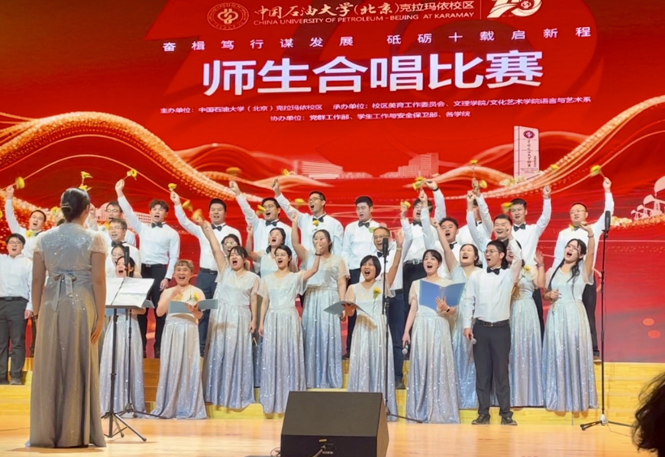 近日,校区“奋楫笃行谋发展 砥砺十载启新程”师生合唱比赛圆满落幕。工学院 35 位教职工组成的合唱团凭借昂扬的精神风貌、精湛的演唱技艺,一路过关斩将,最终斩获节奏领航奖与最佳指挥奖两项荣誉。
