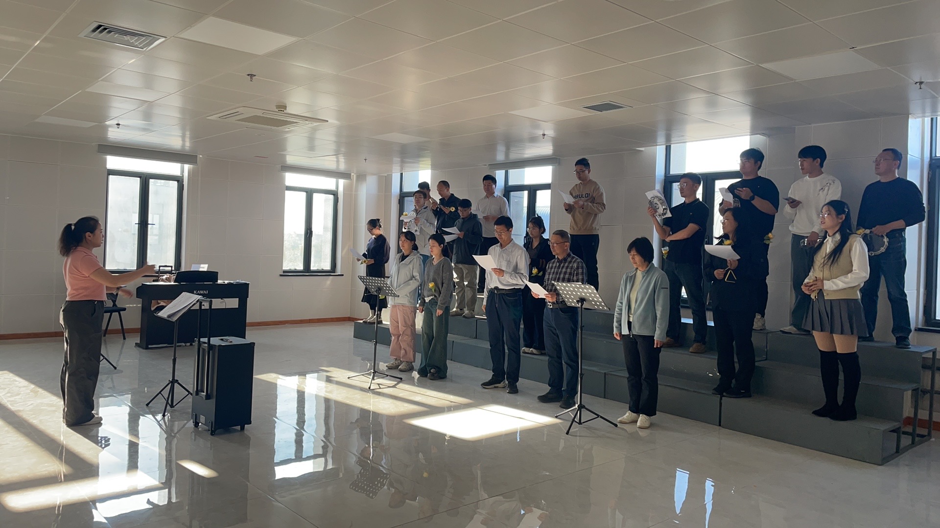 此次合唱比赛旨在凝聚师生力量、共话发展蓝图。工学院高度重视,张玉清副院长亲自带队参赛,35 位参赛教师涵盖学院各系(办)骨干力量,大家主动协调教学科研与排练时间,以饱满的热情投入到备赛之中。为呈现最佳演出效果,合唱团制定了周密的排练计划,在赛前一周的周一、周三、周五晚间,利用每天 3小时的时间集中排练,从发声技巧、声部配合到情感表达,逐一打磨细节。老师们克服工作繁忙、通勤不便等困难,始终保持高昂的训练热情,展现了工学院教职工团结协作、奋勇争先的良好风貌。