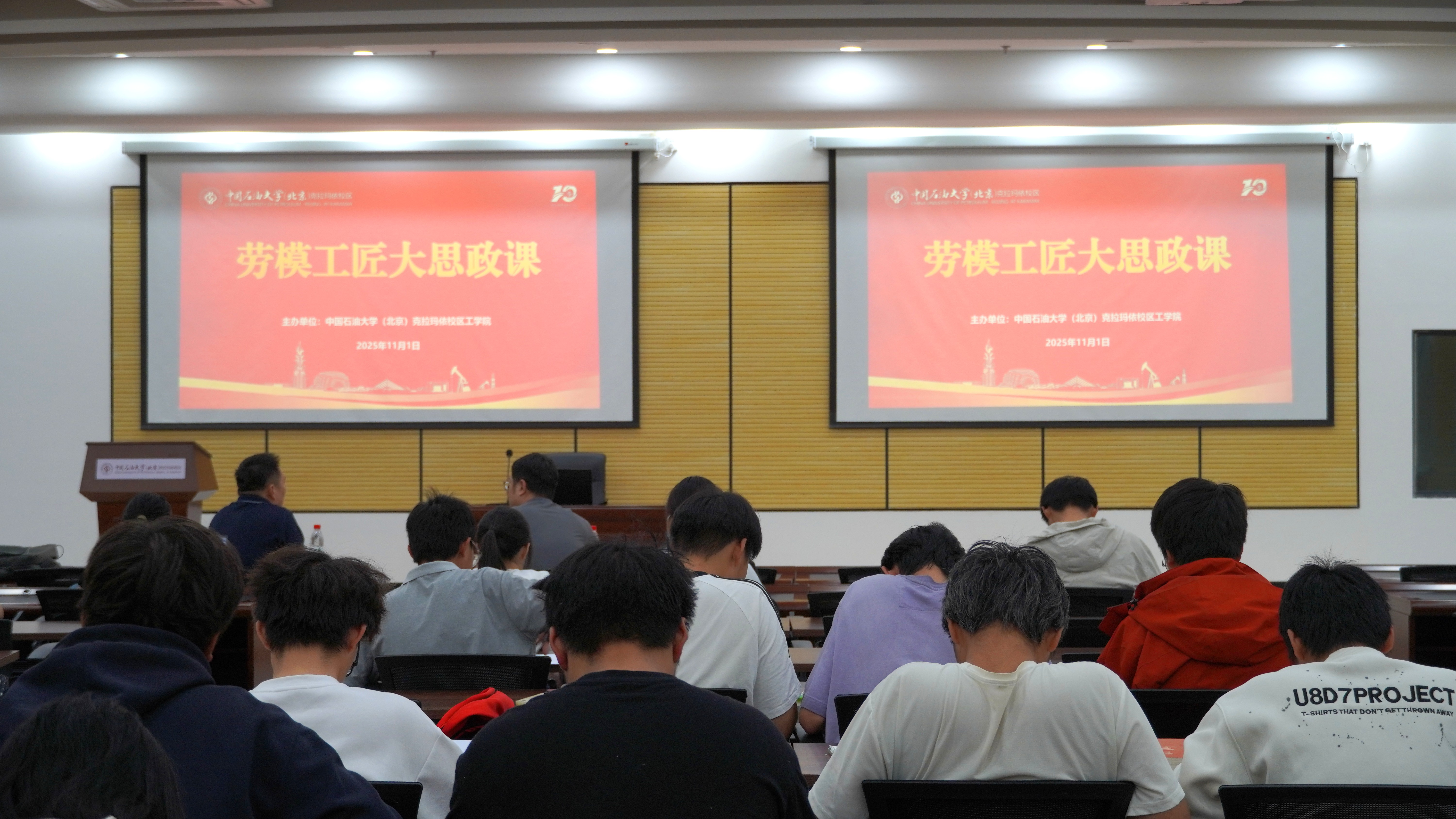 11月1日下午,第二期劳模工匠大思政课,在学生活动中心413学术报告厅圆满举行,本期邀请了中石油克拉玛依石化有限责任公司研究院科研企业一级工程师、中国石油青年立业英才、中国石油青年科技人才、克拉玛依市“拔尖人才”,教震老师为师生做专题报告,工学院党委副书记李冰出席,各年级共百余名学生代表同上一堂“劳模工匠大思政课”。