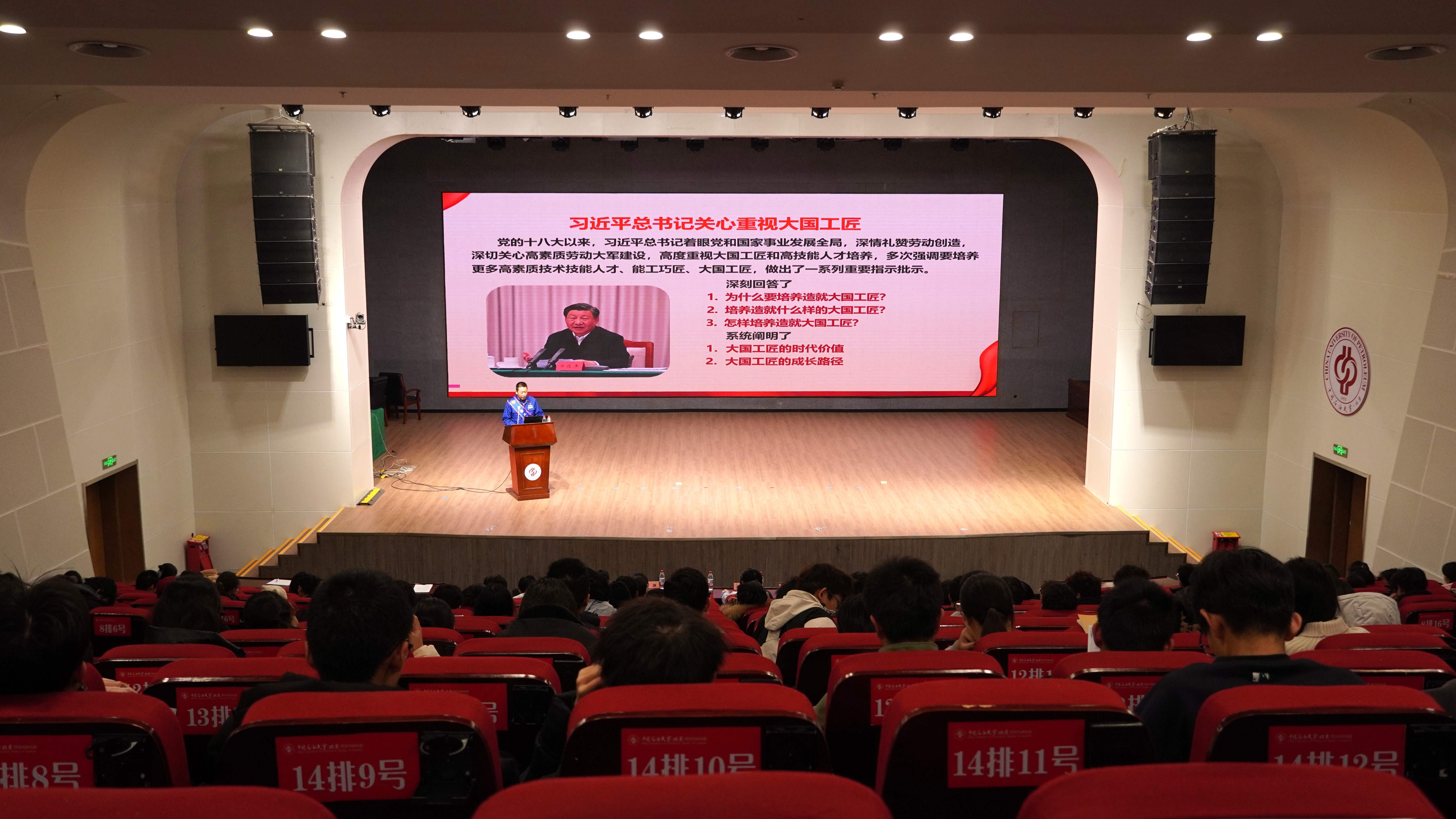 为深入学习贯彻习近平新时代中国特色社会主义思想,大力弘扬新时代的劳模精神、劳动精神、工匠精神,12月14日,第三期“劳模工匠大思政课”在J2国际交流中心报告厅圆满举行。本次活动特邀享受国务院政府特殊津贴专家、大国工匠、新疆天业(集团)有限公司集团安全管理部副部长邵旭鹏老师,为校区做专题报告,分享工匠人的成长故事与奋斗经验。工学院负责人和300余名师生参加此次活动。