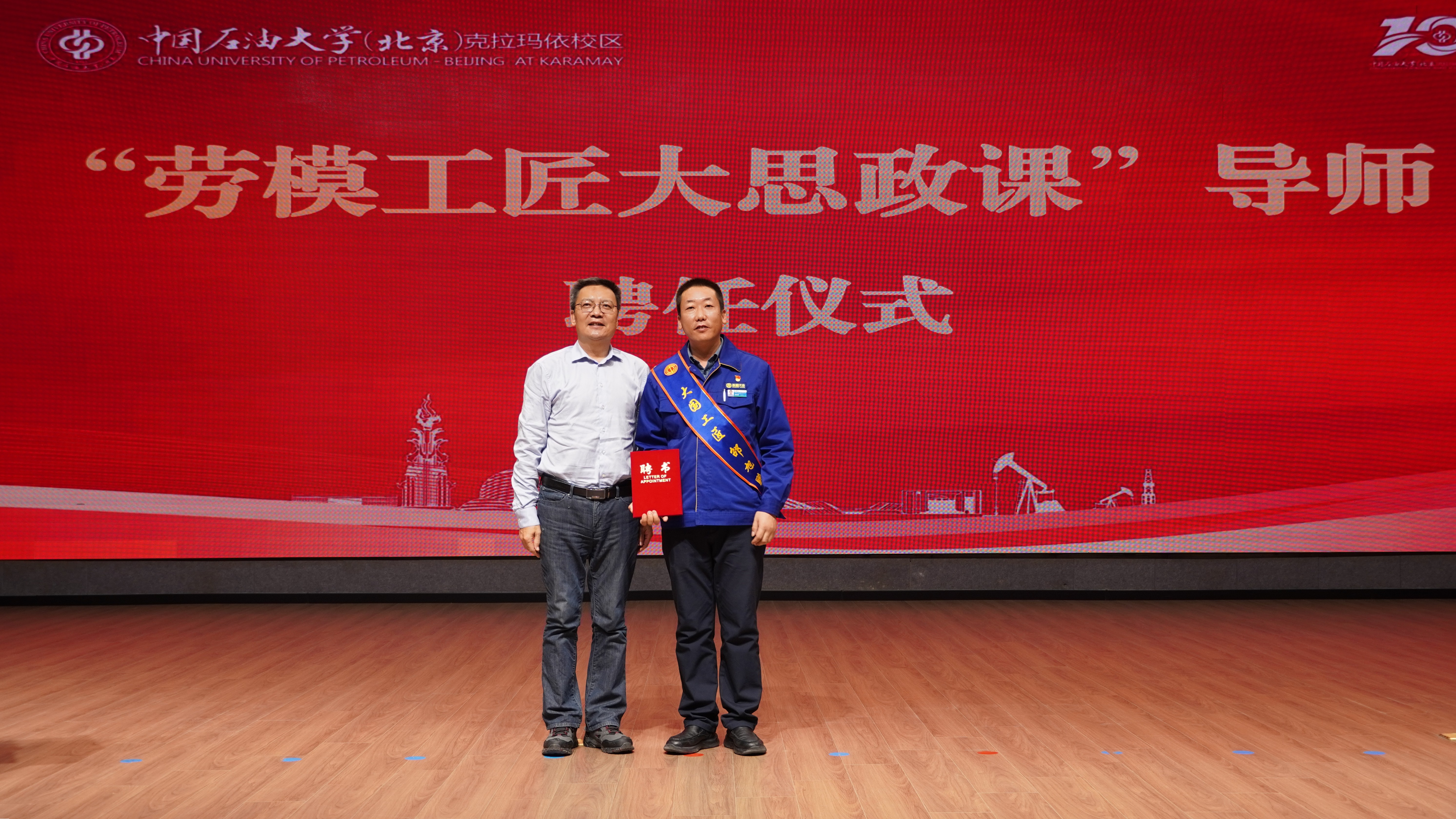 会上,还举行了“劳模工匠大思政课”导师聘任仪式,工学院党委书记张自强为邵旭鹏颁发聘书。