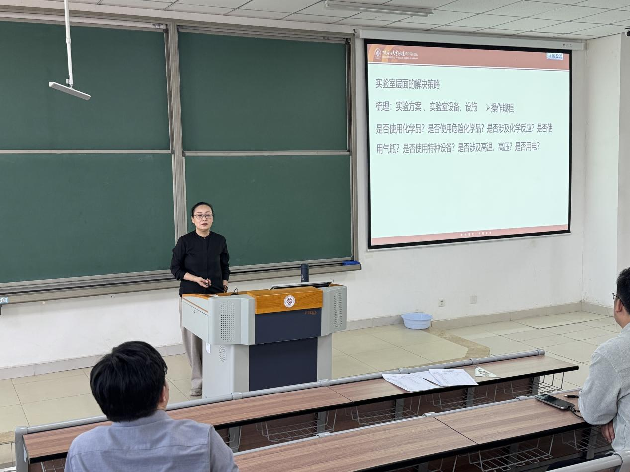培训系统解读了《中华人民共和国安全生产法》《中华人民共和国危险化学品安全法》(2026年5月1日起施行)、《高等学校实验室安全分级分类管理办法》等法律法规,强调了全员安全生产责任制、危险化学品全生命周期管理、风险分级管控与隐患排查治理双重预防机制等核心要求。