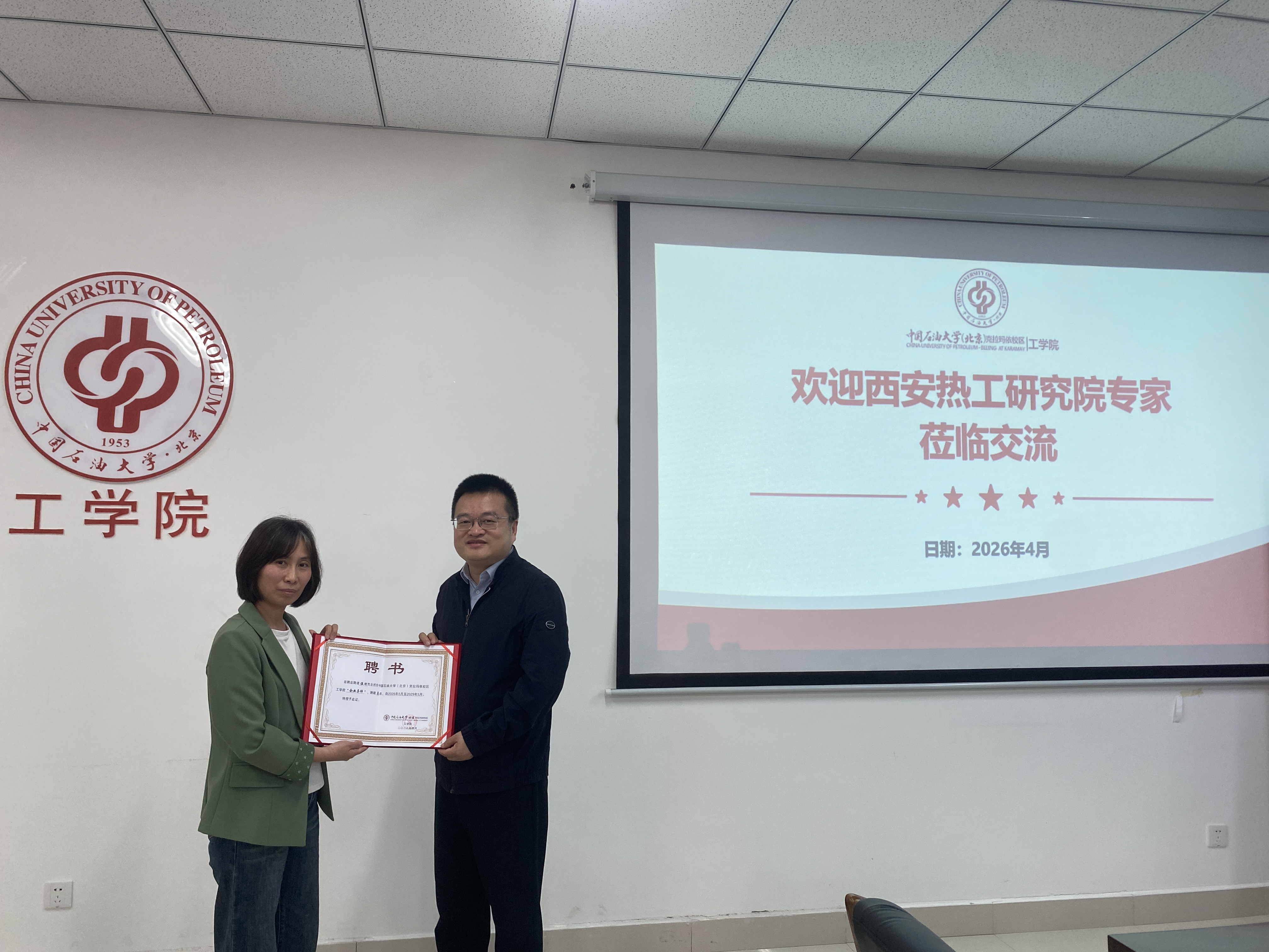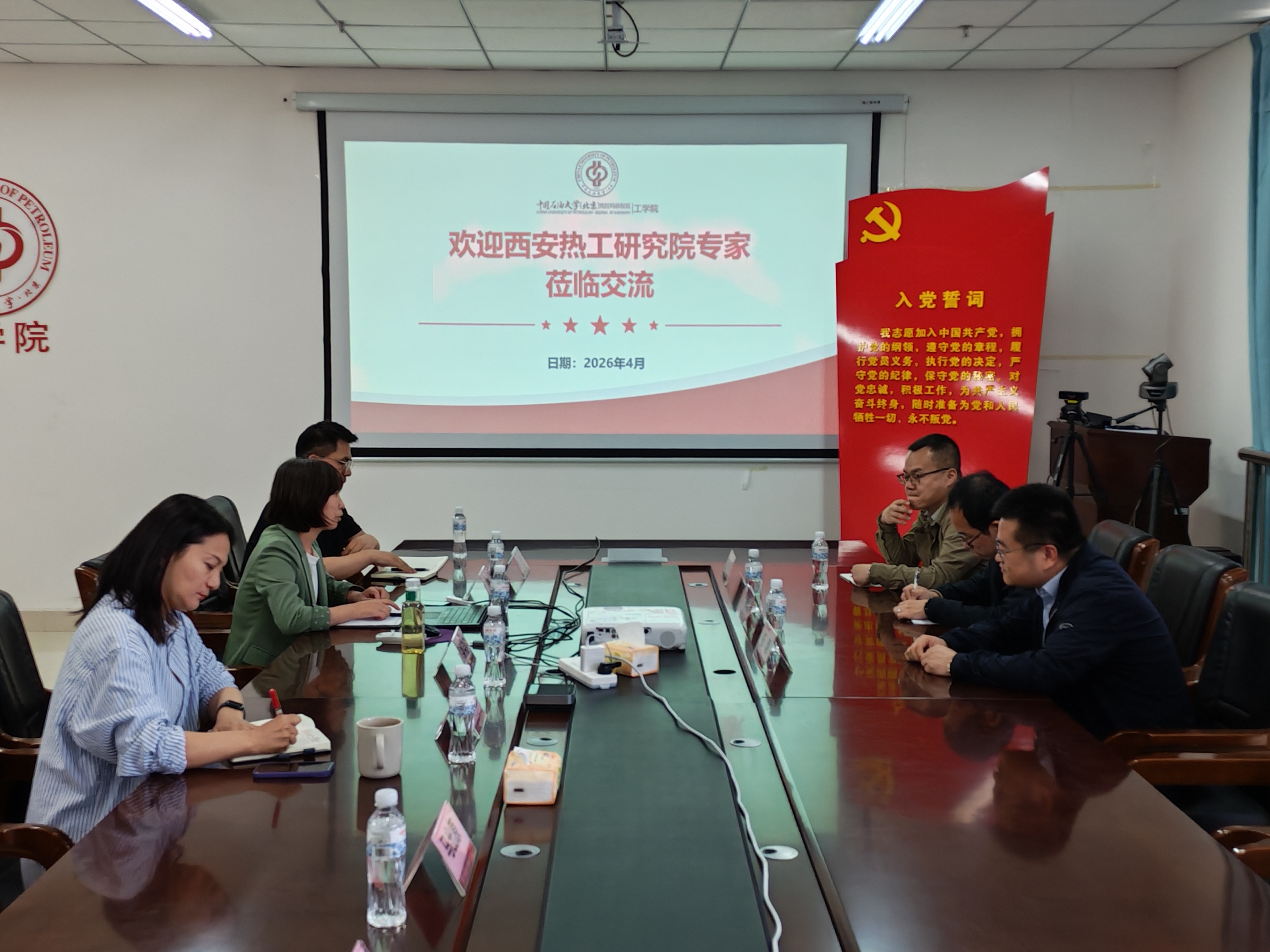 2026年4月22日下午,西安热工研究院电站调试技术部主任伍刚,专家王涛、闫文辰一行到访我院,双方在学院418会议室举行校企合作交流座谈会。会议由能源与动力工程专业负责人陈晓玲主持,新能源专业负责人米沙及相关教师代表参加。