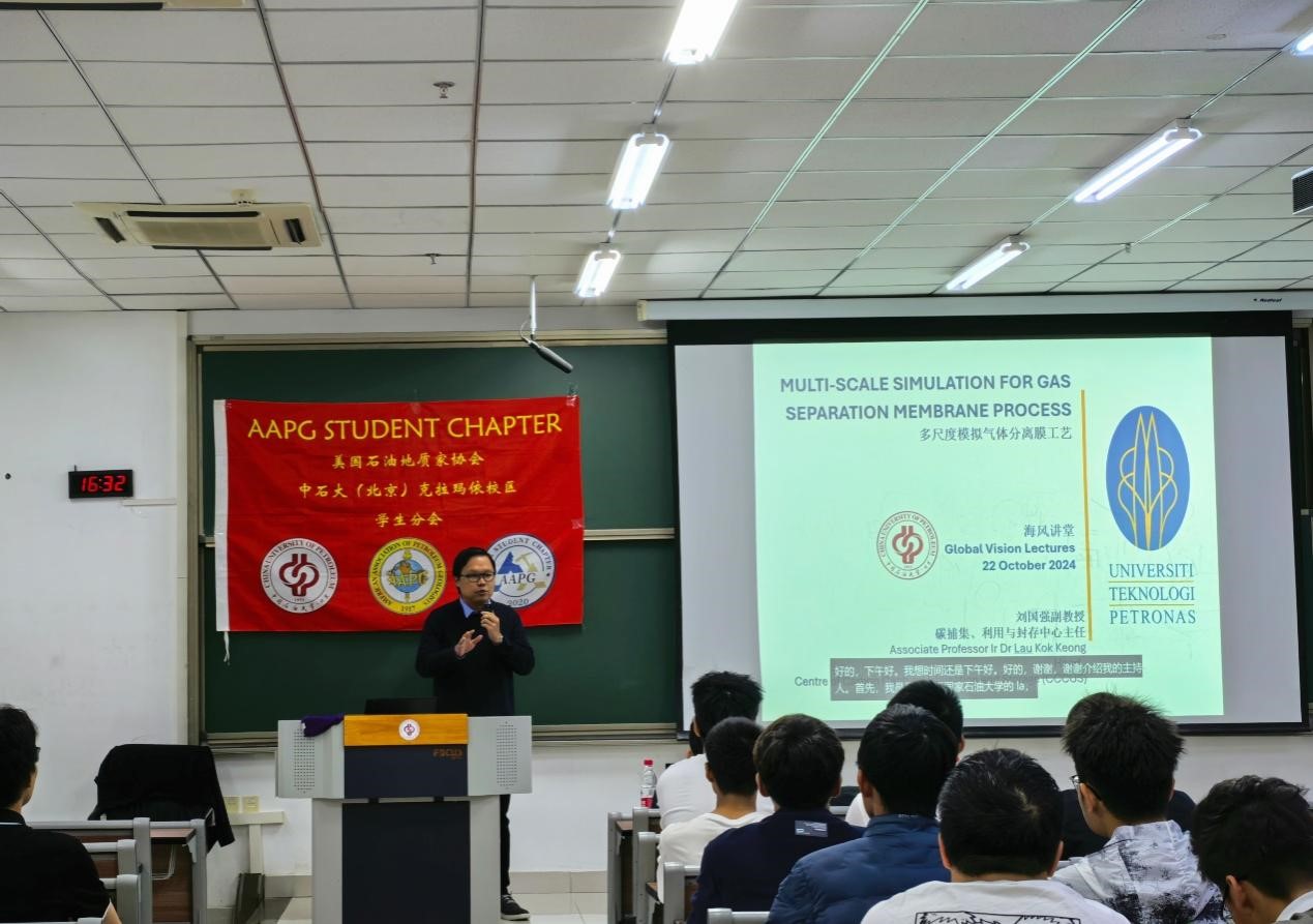 10月24日下午,Lau Kok Keong副教授为校区师生做了“相容性技术控制的进步与多尺度模拟气体分离膜工艺”的专题讲座。讲座紧扣当下油田开发中的关键技术难题,通过深入浅出的讲解,为与会师生展现了乳液驱油技术在提高剩余油采收率方面的巨大潜力,极具前瞻性与应用价值。